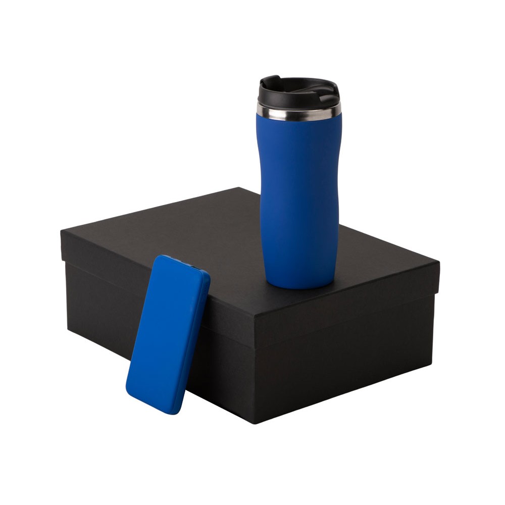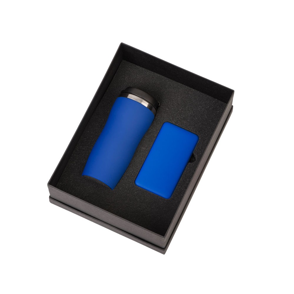 Подарочный набор c вакуумной термокружкой и повербанком С2, синий