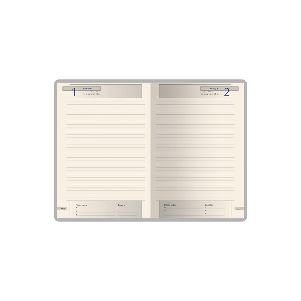 • удобно организованный полудатированный блок из бежевой бумаги плотностью 70 г/кв.м, с линовкой серого цвета;