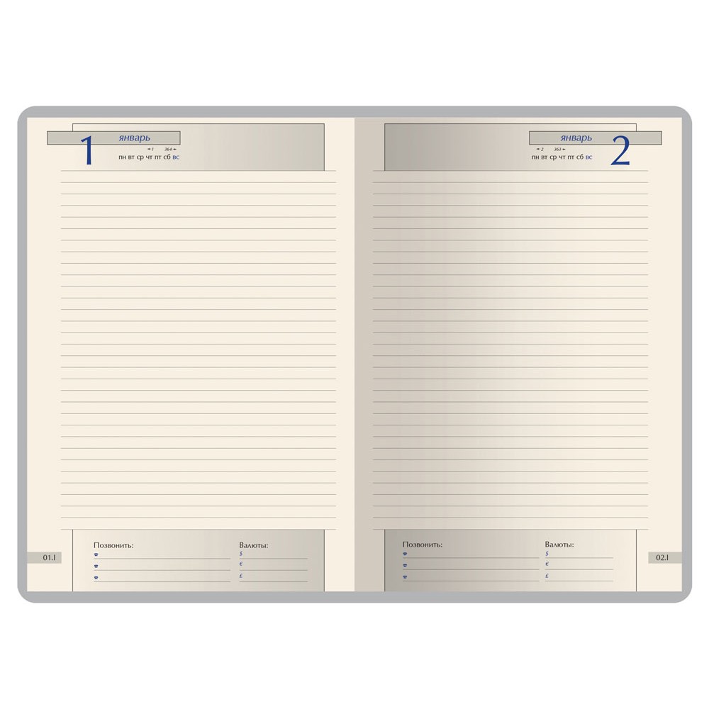 • удобно организованный полудатированный блок из бежевой бумаги плотностью 70 г/кв.м, с линовкой серого цвета;