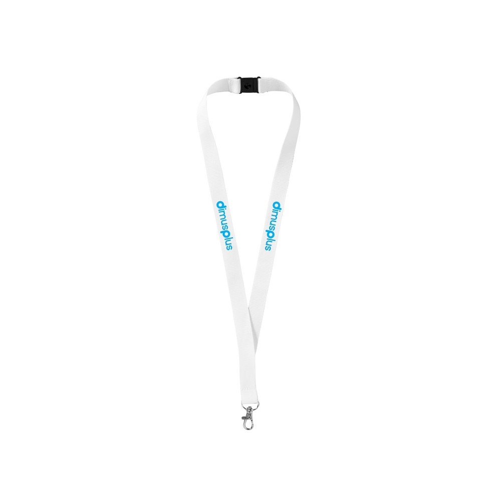 Шнурок на шею выполнен из прочного полиэстера и оснащен защитным замком и карабином. К шнурку можно крепить бейджи с информацией об участниках и организаторах рекламных кампаний, выставок и форумов.