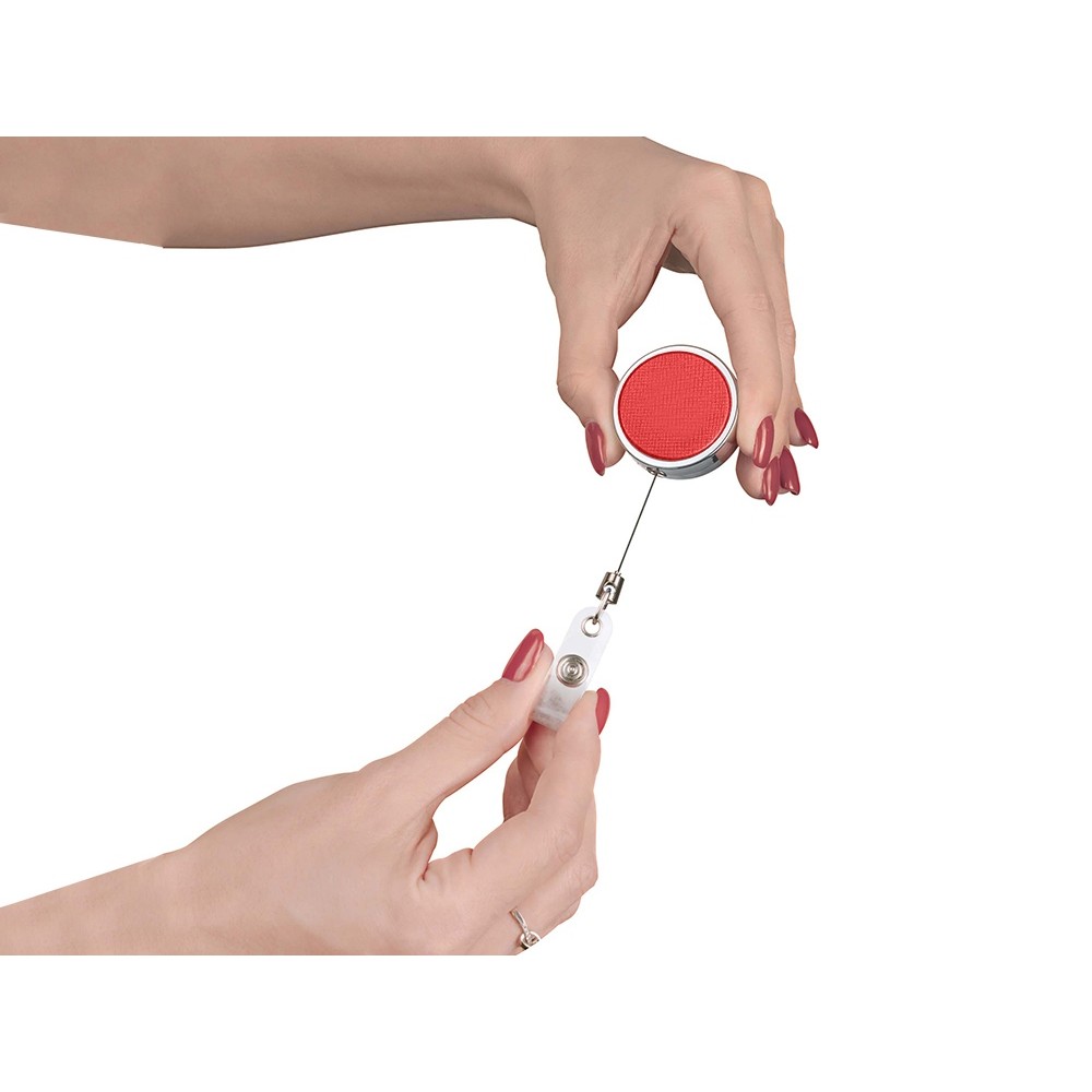 Ретрактор может быть не просто средством для закрепления бейджа или пропуска, но и стильным деловым аксессуаром, компонентом welcome pack или набора для конференций, который будет продолжать фирменный стиль вашей компании при помощи брендирования. Благодаря металлическому корпусу и вставке из экокожи он смотрится очень элегантно и строго.
