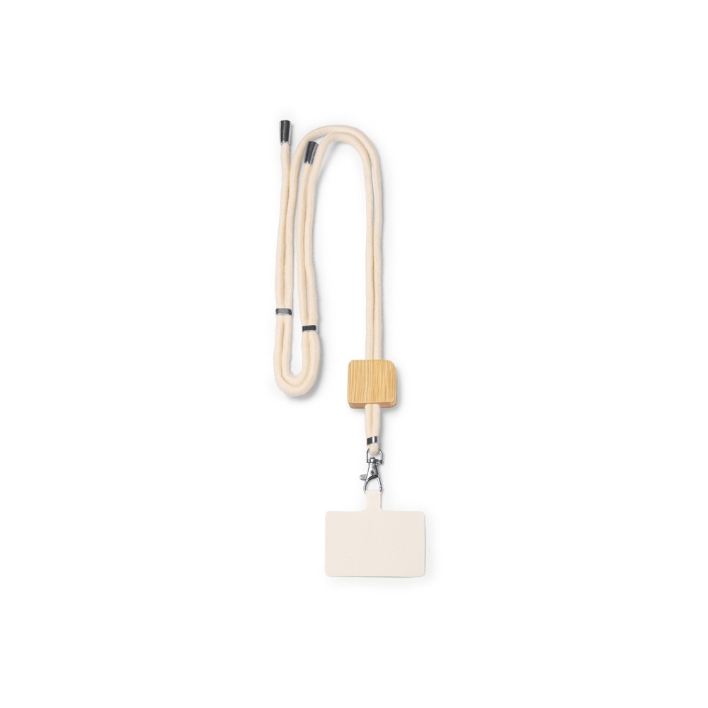 Шнурок-держатель для мобильного телефона из хлопка с бамбуковыми вставками и системой регулировки.