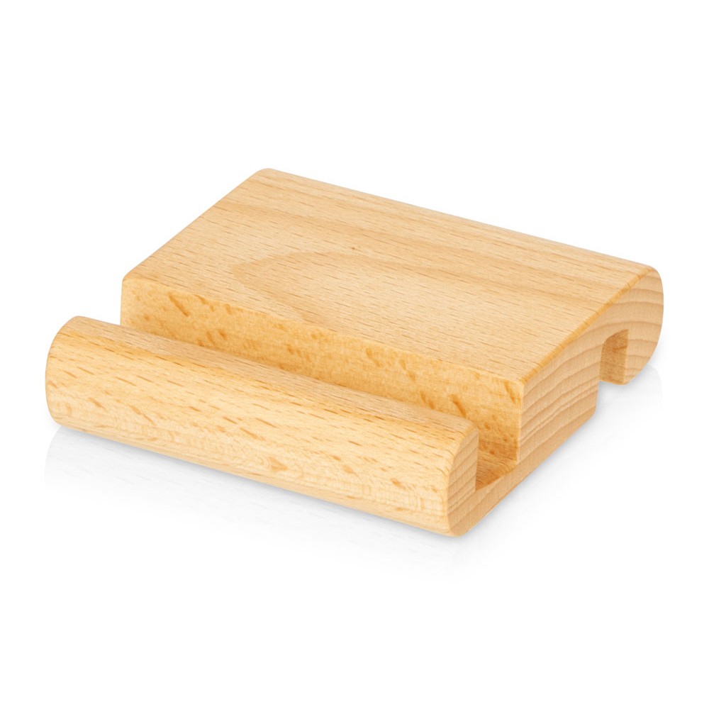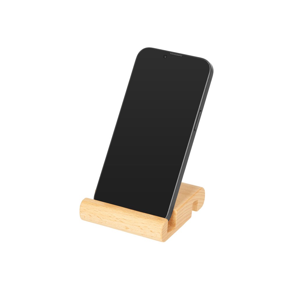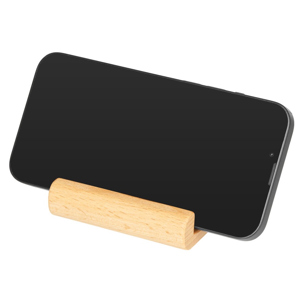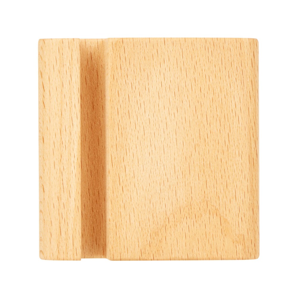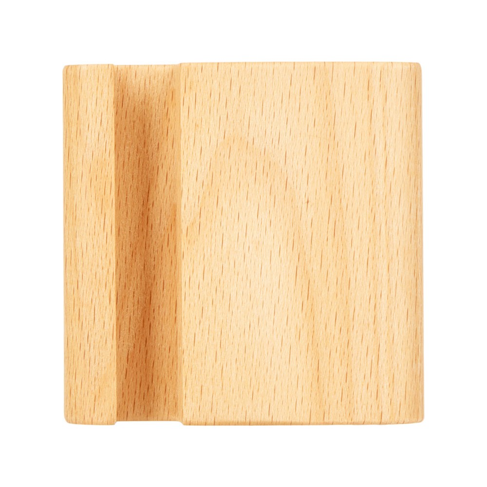 Подставка для смартфона изготовлена из  дерева бука, что обеспечивает прочность и экологичность изделия. Она имеет две разные выемки, которые позволяют установить смартфон различных размеров как с чехлом, так и без него. Материал безопасен и подходит для любых поверхностей. Легкий уход за подставкой также делает ее практичной и удобной в использовании.