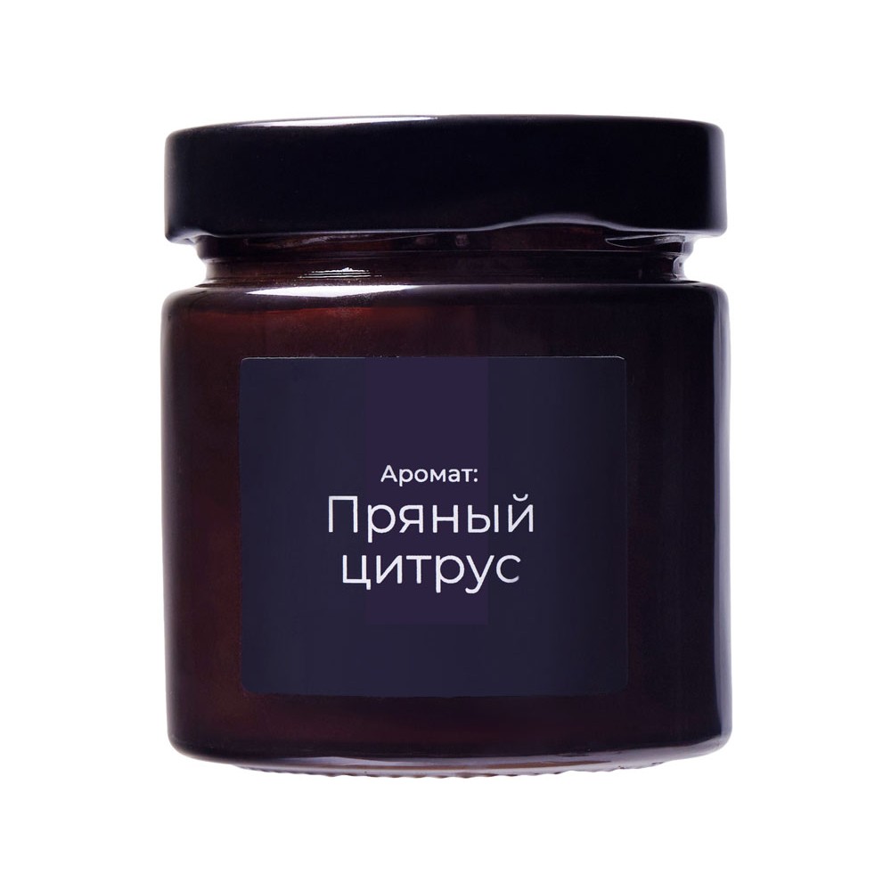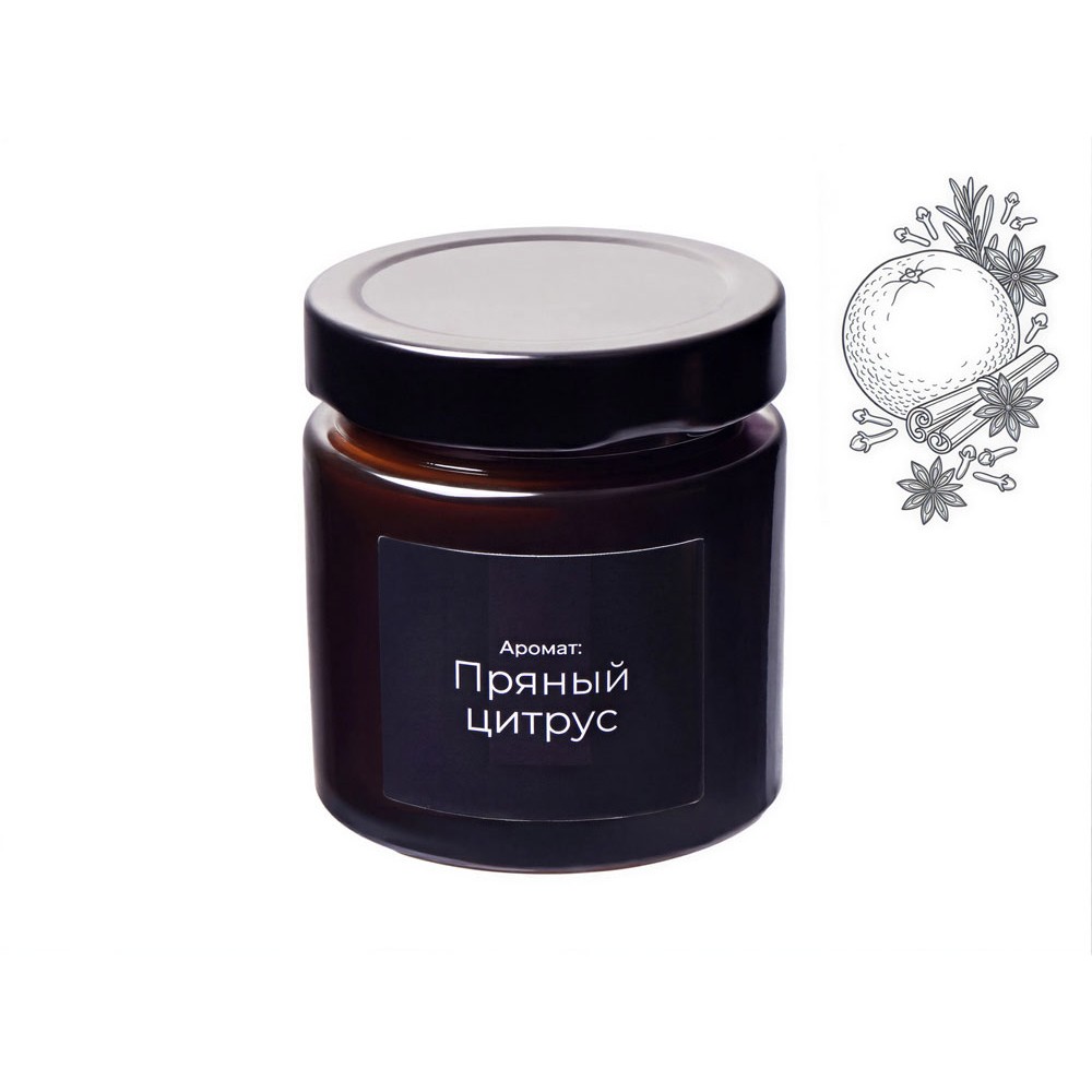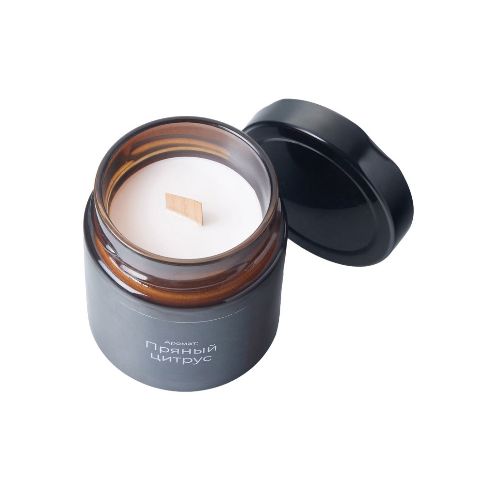 • Свеча в стеклянной коричневой банке 200мл, аромат "Пряный цирус", фитиль деревянный
