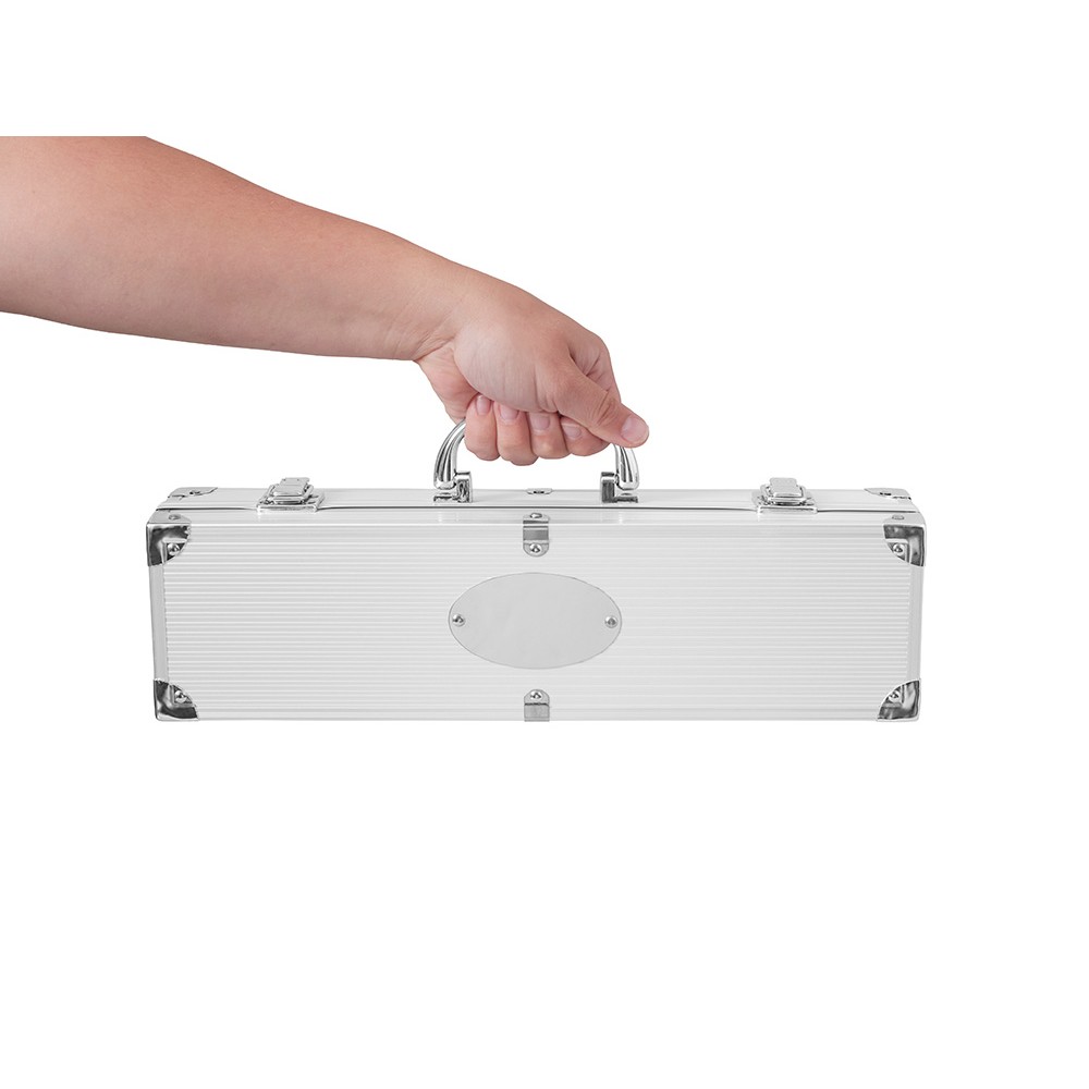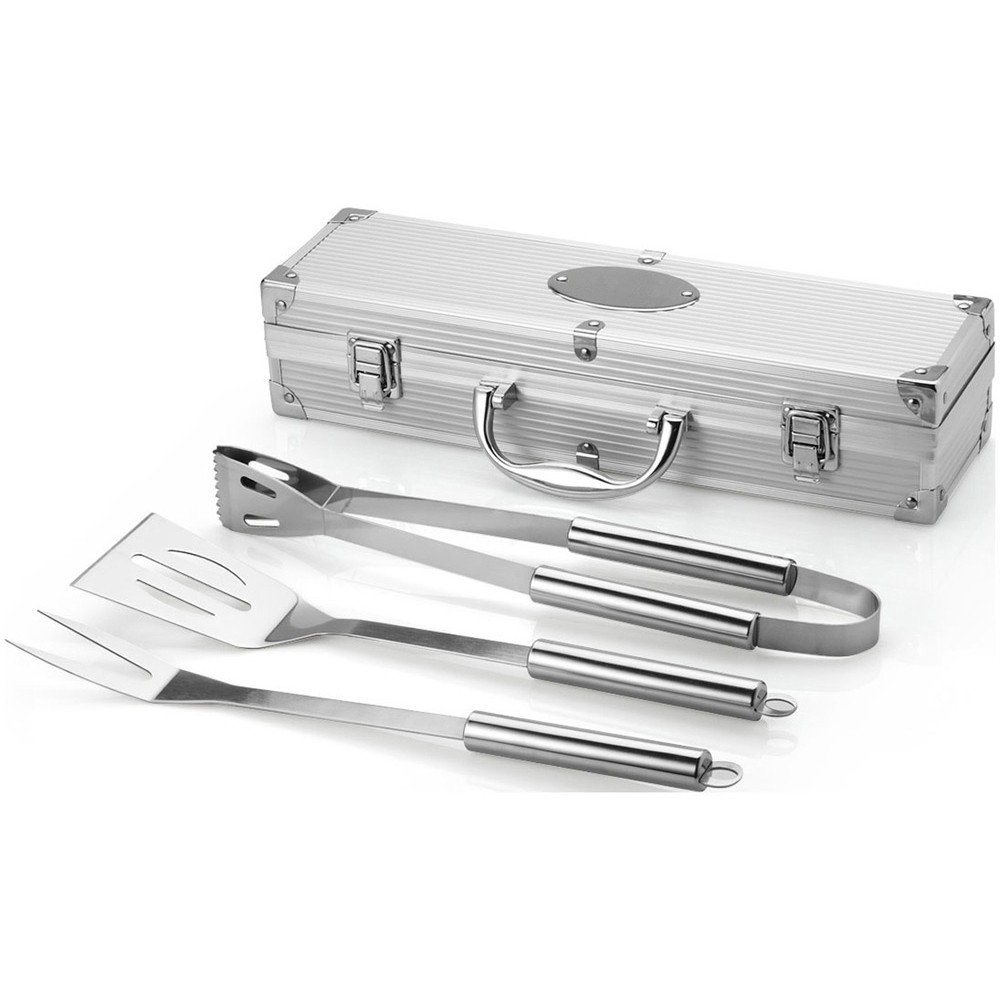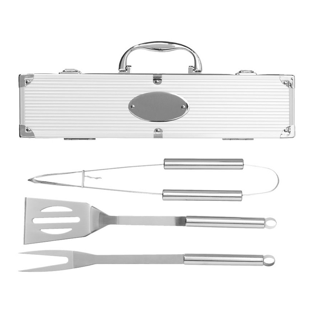 Набор для барбекю 3 предмета. Лопатка, щипцы и вилка в кейсе. На алюминиевом кейсе имеется шильд для персонализации.