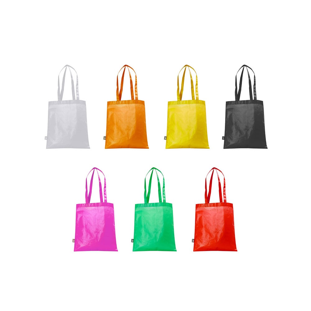 Многоразовая сумка с матовой ламинированной отделкой. Изготовлена из прочного RPET с усиленными ручками.