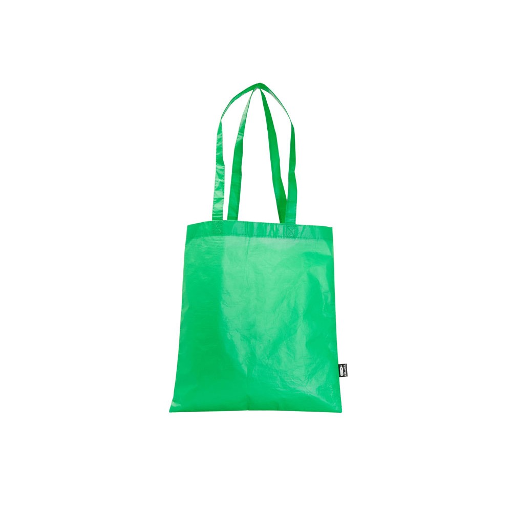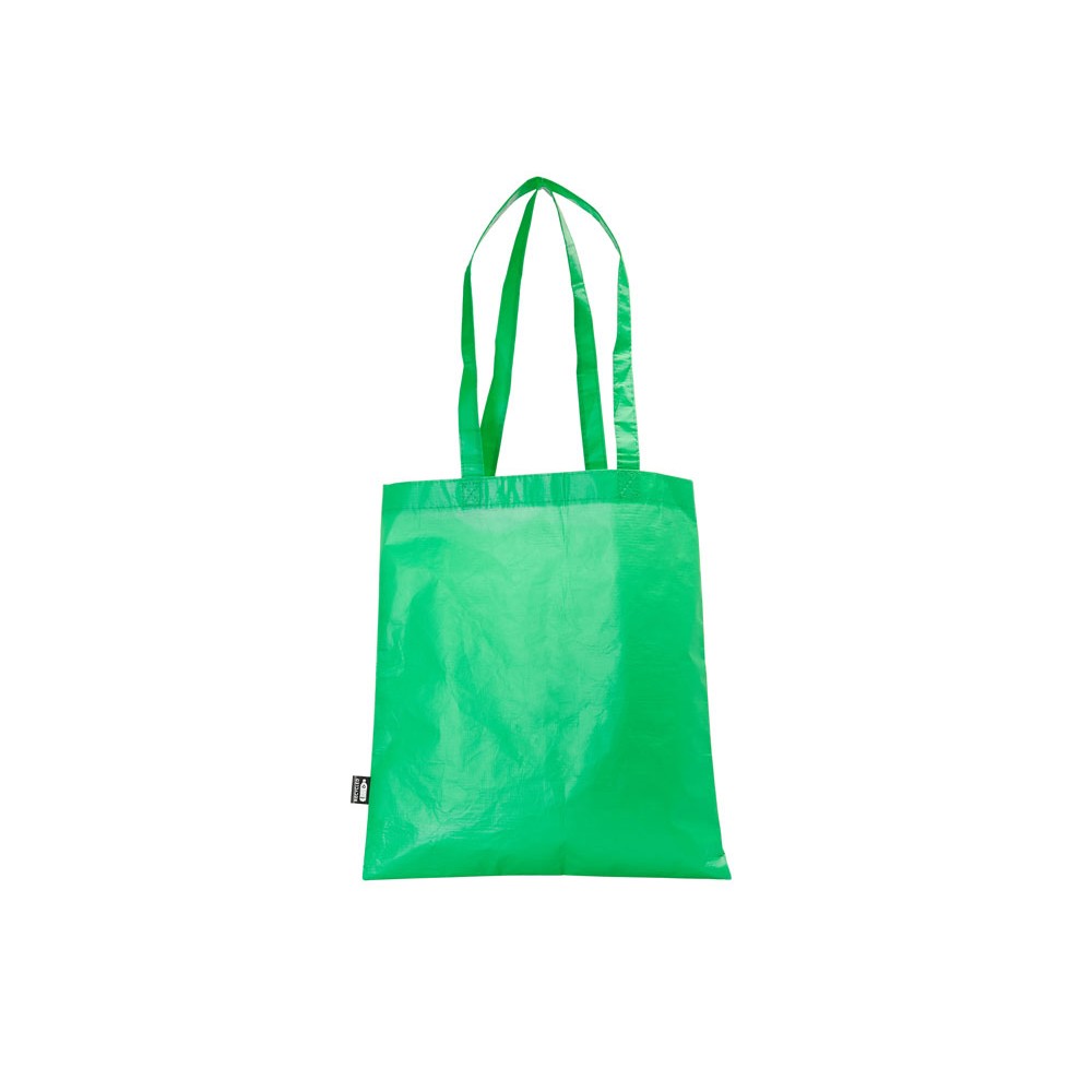 Многоразовая сумка с матовой ламинированной отделкой. Изготовлена из прочного RPET с усиленными ручками.