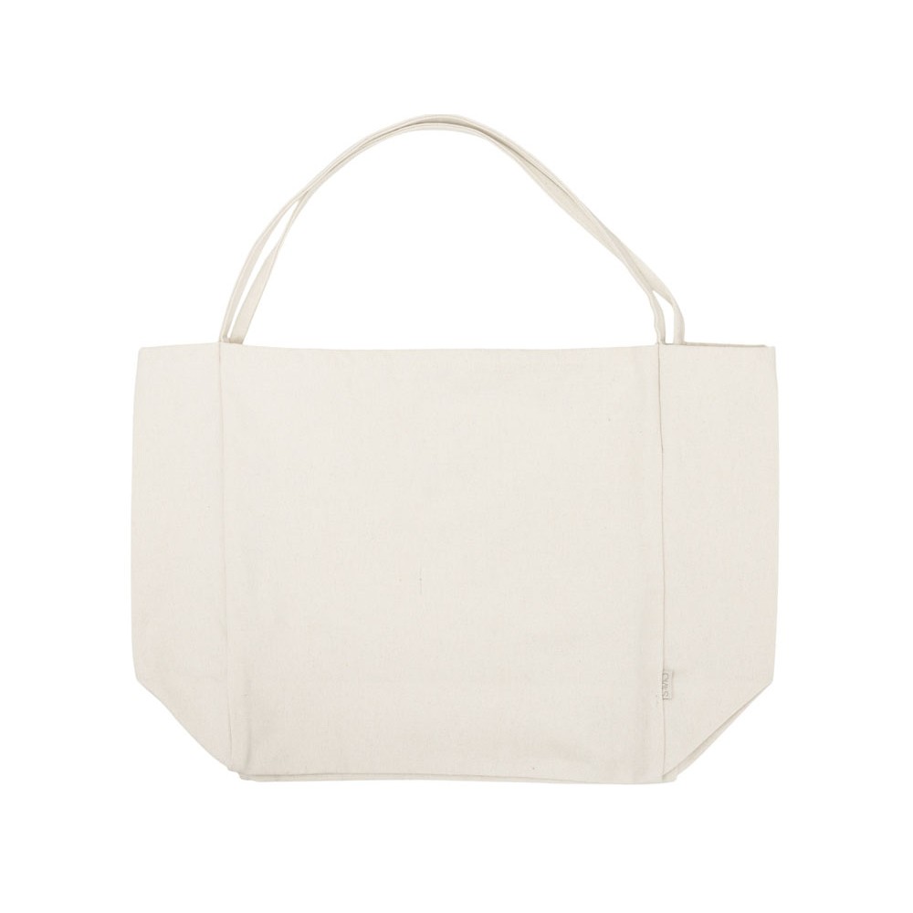 Сумка-шоппер из переработанного хлопка очень вместительна благодаря донной складке. Удобные широко расположенные лямки создают дополнительный комфорт при ношении.