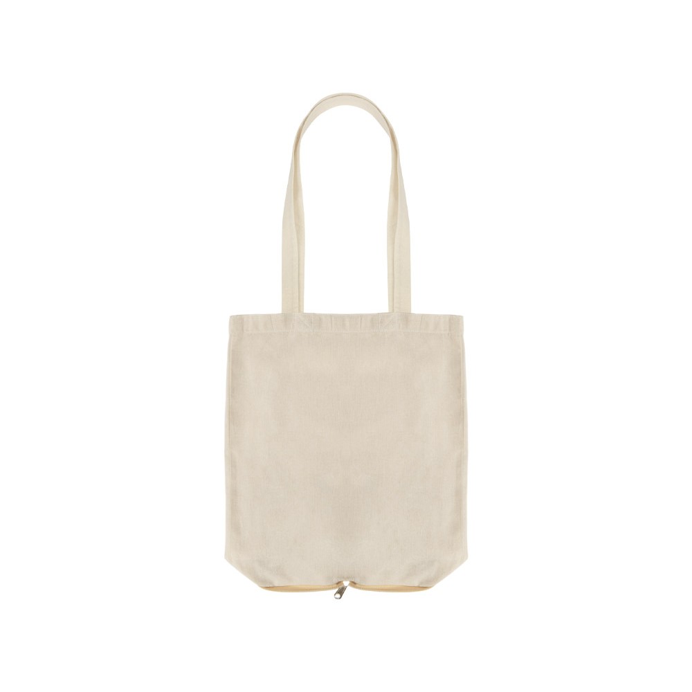 Складная сумка из хлопка с дном из джута. Снаружи большой вместительный карман. В сложенном виде закрывается на молнию.