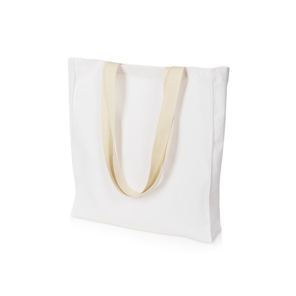 Плотная вместительная сумка с широкими парусиновыми ручками, которые не будут давить в плечо. Донная складка увеличивает вместимость.
