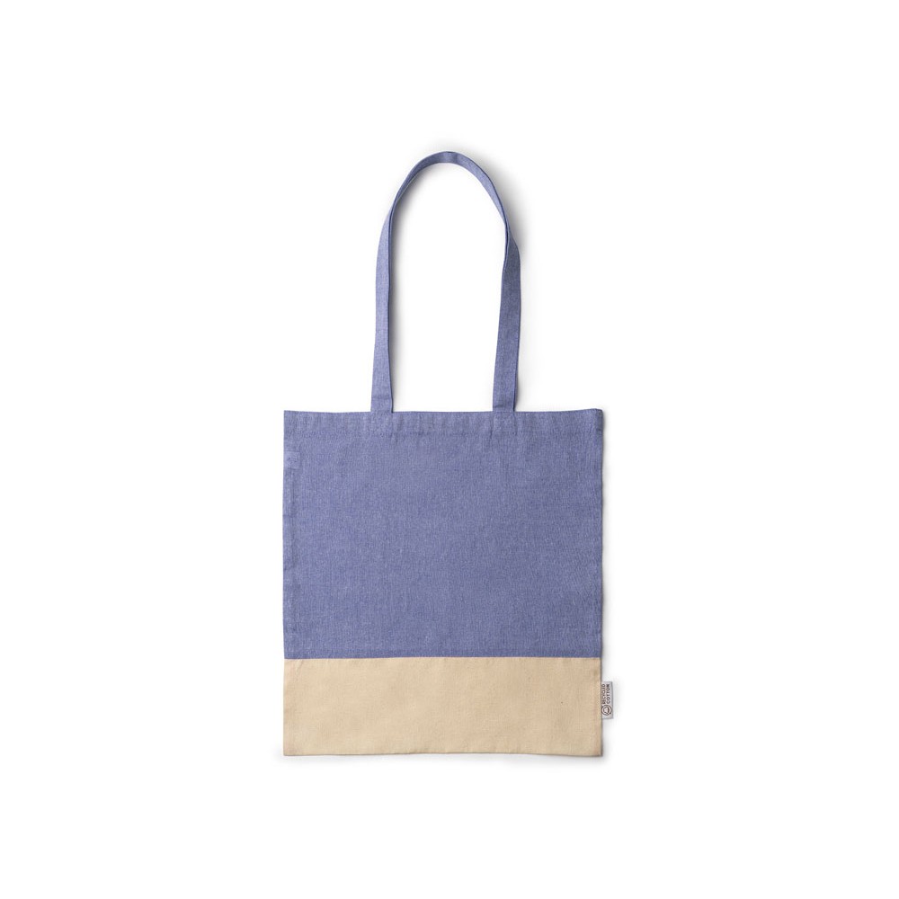 Сумка из переработанного хлопка с отделкой из натурального хлопка плотностью 120 г/м². Усиленные ручки длиной 70 см.