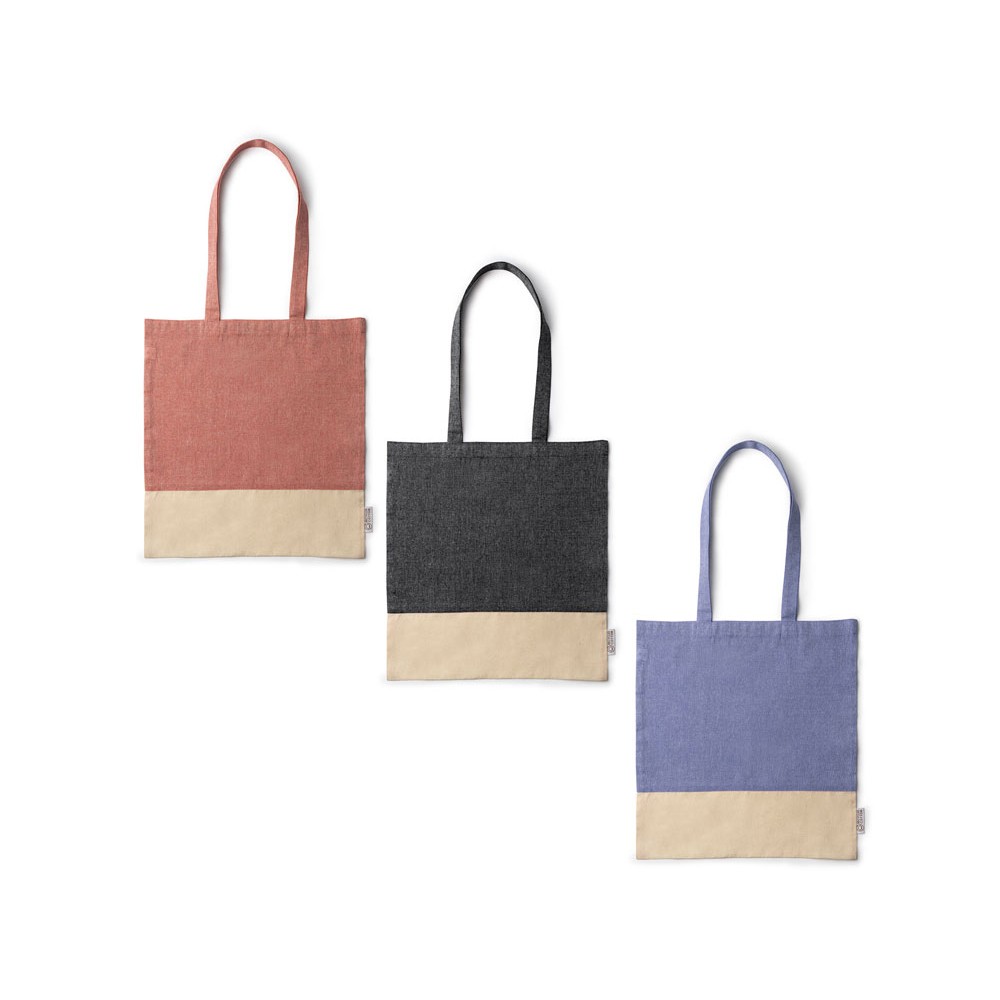 Сумка из переработанного хлопка с отделкой из натурального хлопка плотностью 120 г/м². Усиленные ручки длиной 70 см.