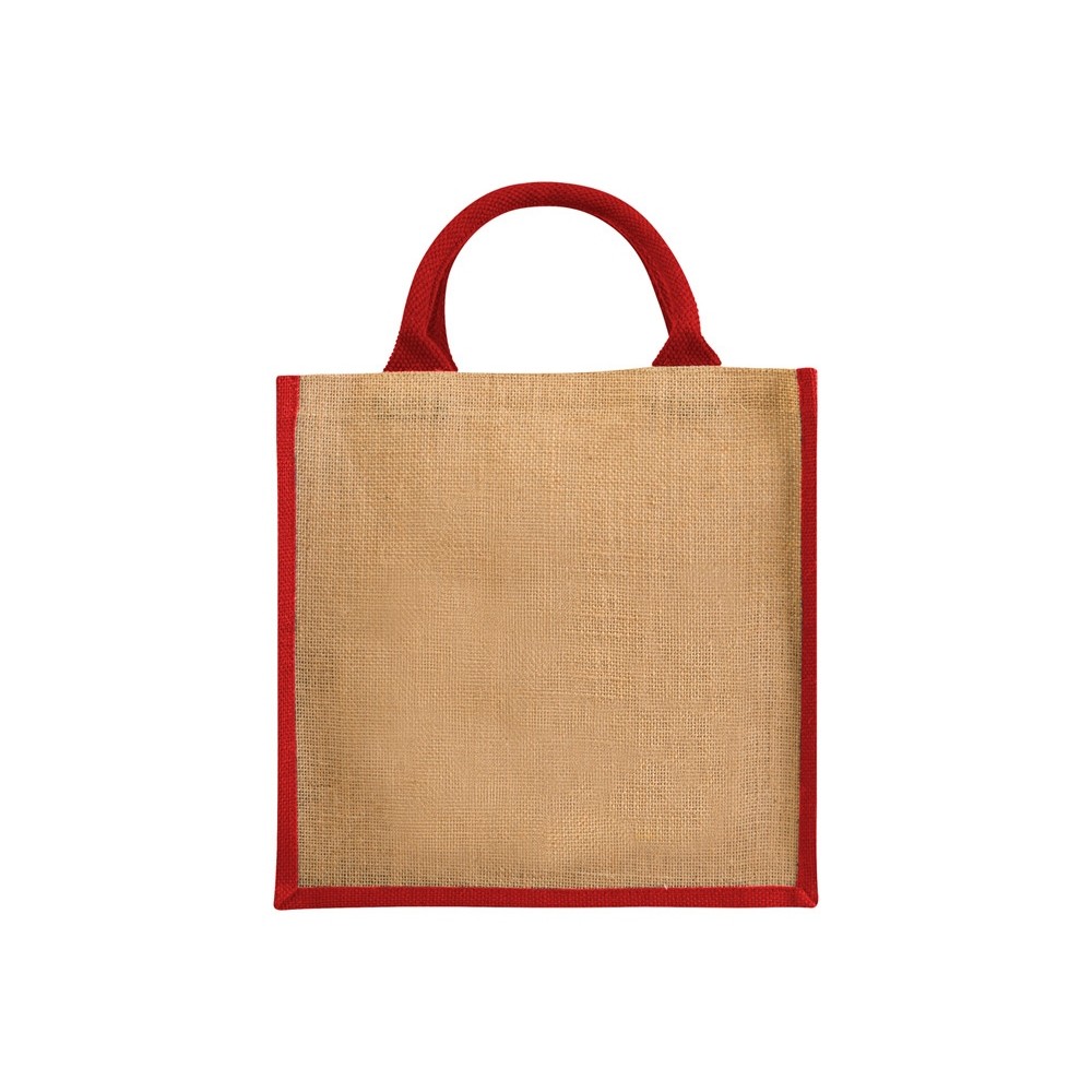 Джутовая подарочная сумка Chennai. Джутовая сумка с ламинированным открытым основным отделением и вставкой. Хлопковые ручки высотой 11,5 см. Джут.