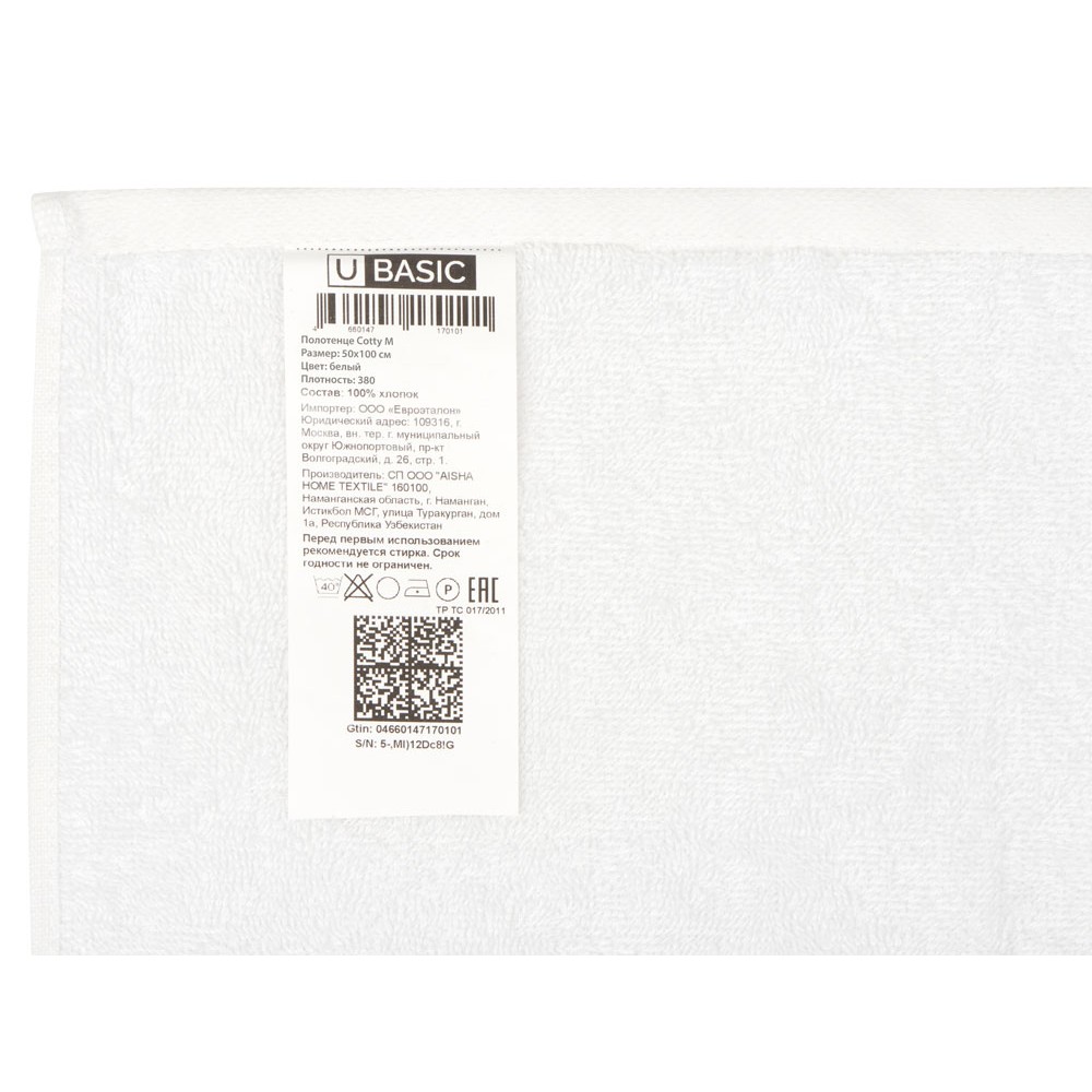 Полотенце Cotty S, 380, белый