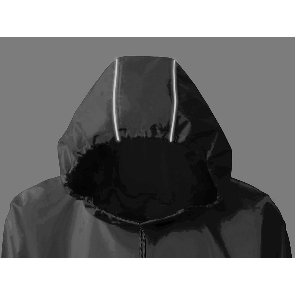 Швы капюшона и рукавов отделаны светоотражающим кантом, который делает человека заметным даже в темное время суток. Для комфортной посадки — затягивающийся на шнурок капюшон с фиксатором и манжеты на резинке.