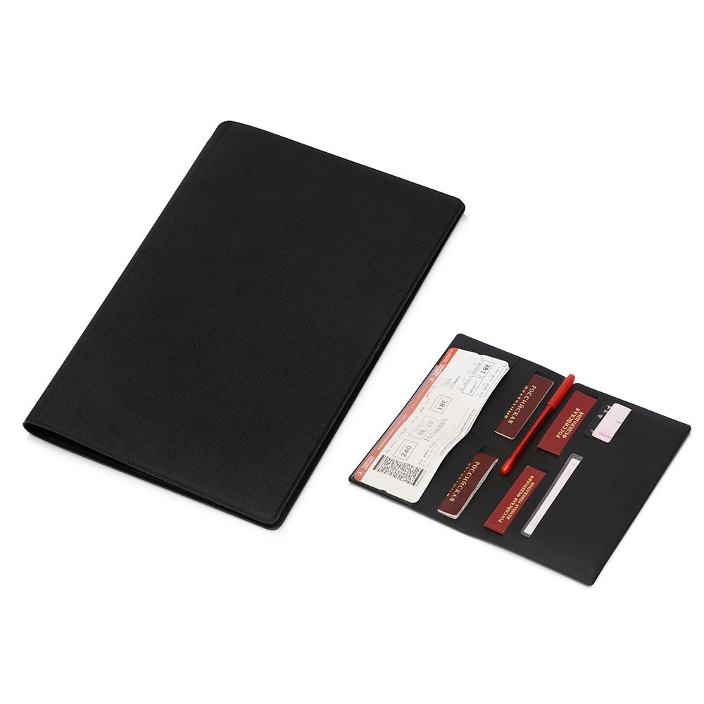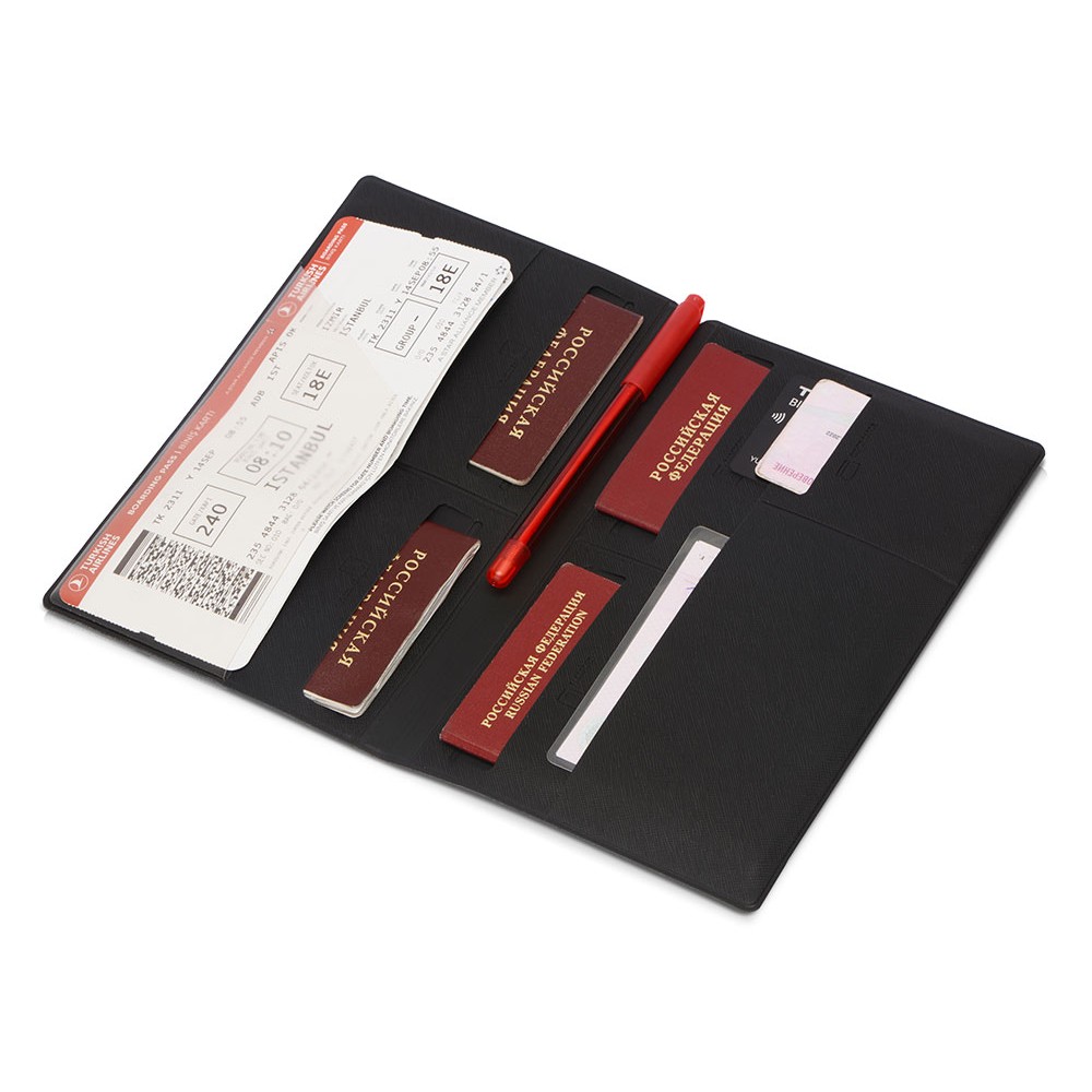 Внутри имеется восемь карманов, которые позволяют вместить документы для семьи из четырех человек. Документы аккуратно разложены и не утратят свою форму. Благодаря своим преимуществам органайзер для путешествий становится не только отменным подарком, но и эффективным рекламным средством.