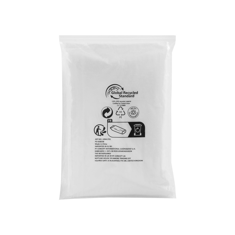 Технические характеристики Одноразовый дождевик Mayan с чехлом для хранения из материалов, переработанных по стандарту GRS - Белый