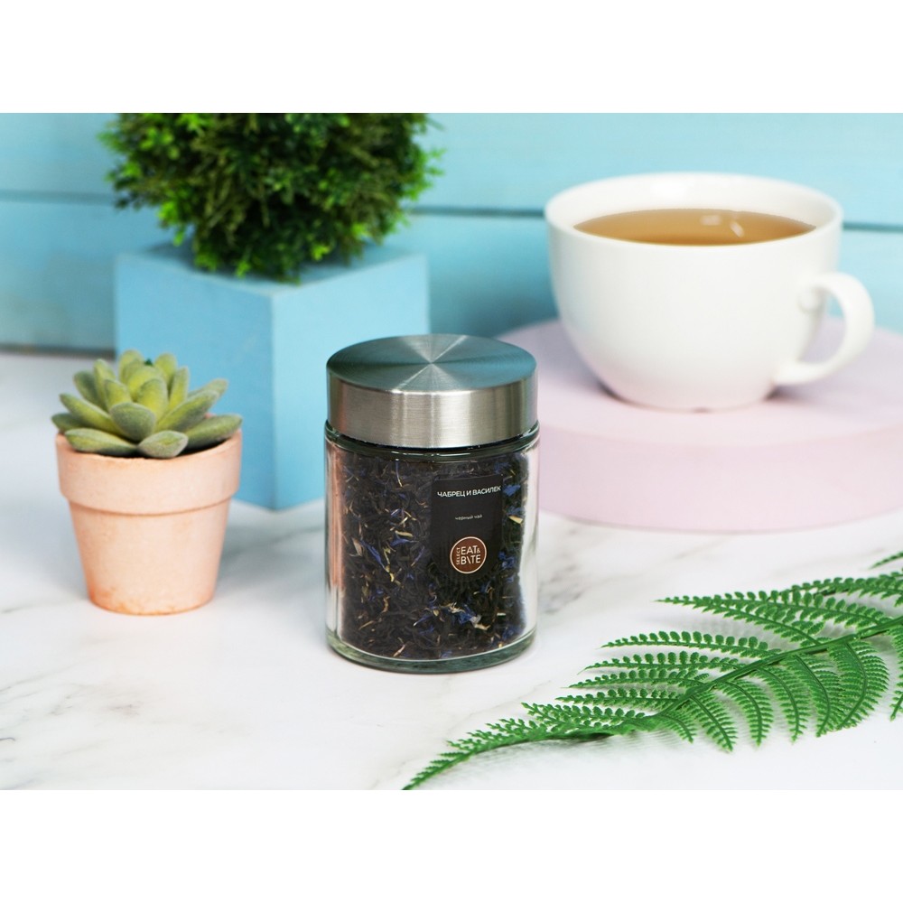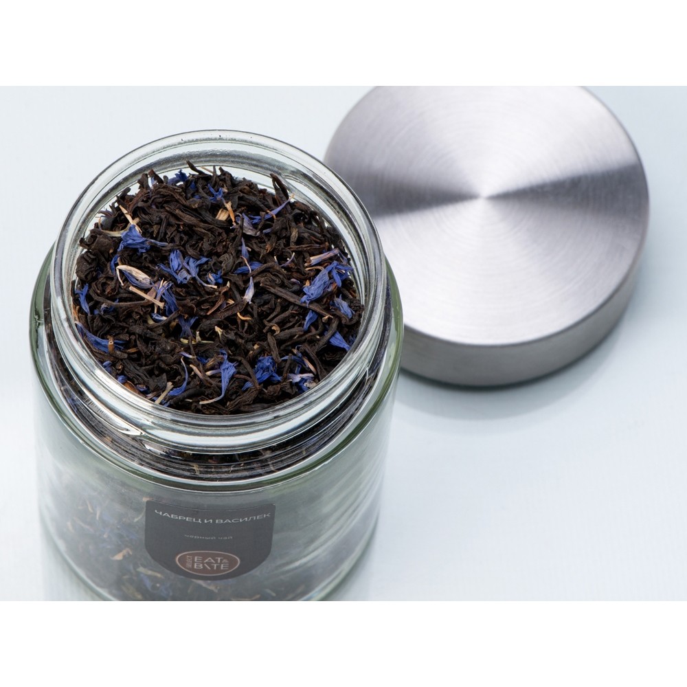 Чай черный, серия "Essence", с чабрецом и лепестками василька, стеклянная банка