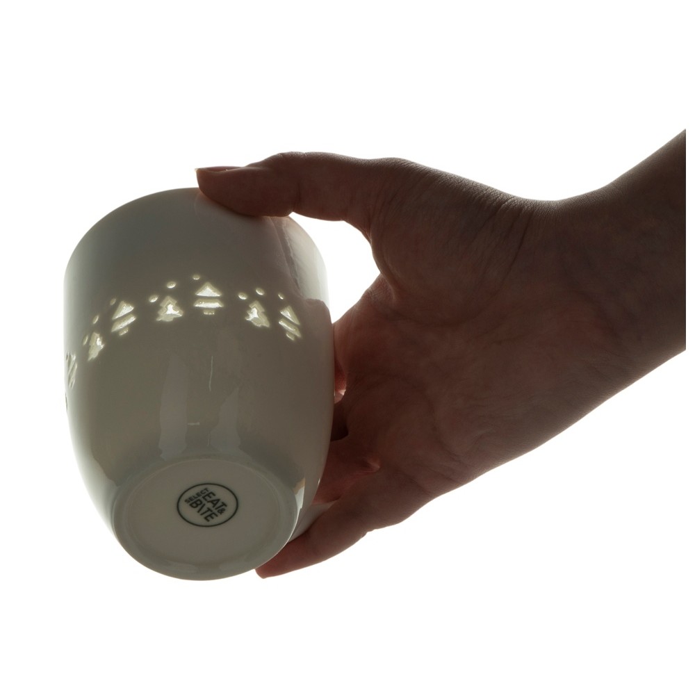Эффектная особенность этой кружки - узор с эффектом “рисового зерна”, в котором отверстия в фарфоре заполнены прозрачной глазурью. Это уникальная древнекитайская техника, которая дает и кружке, и напитку буквально светиться изнутри.