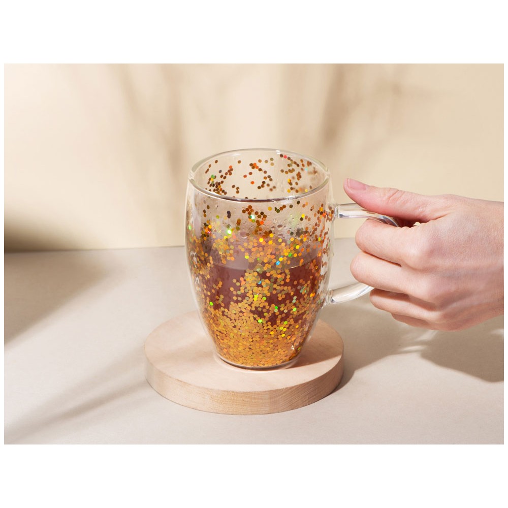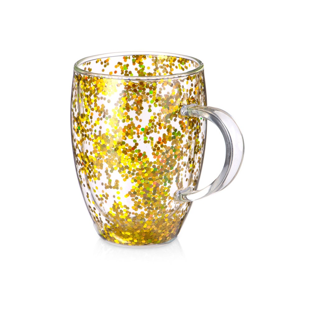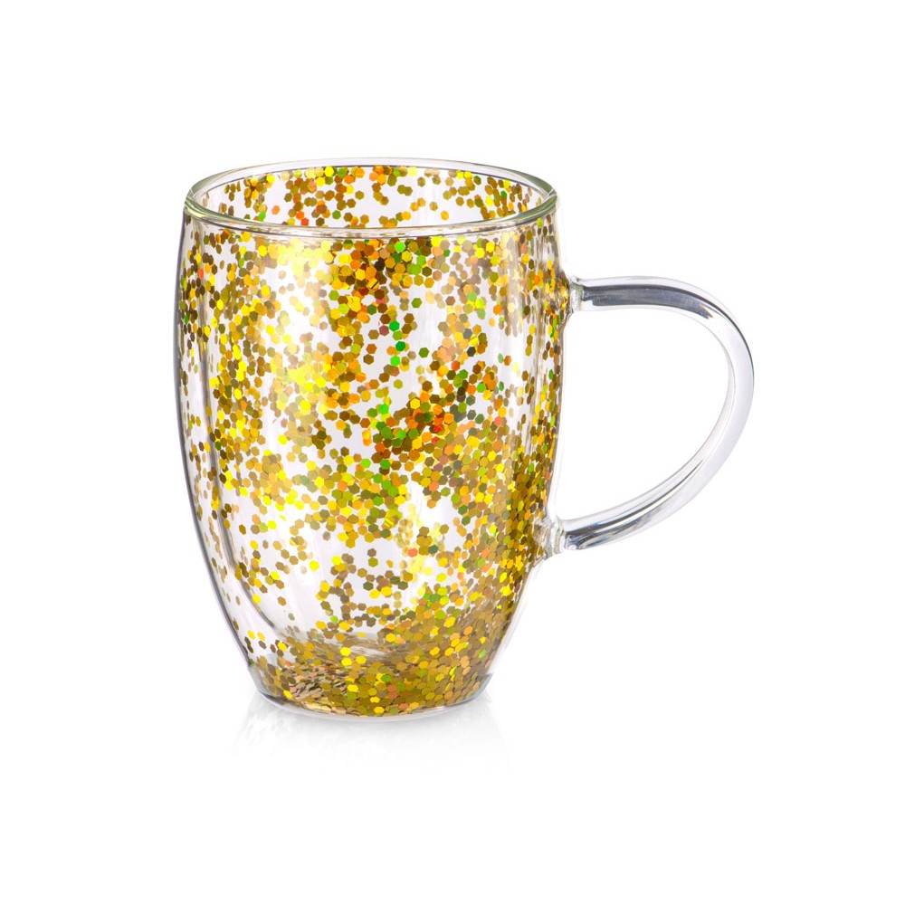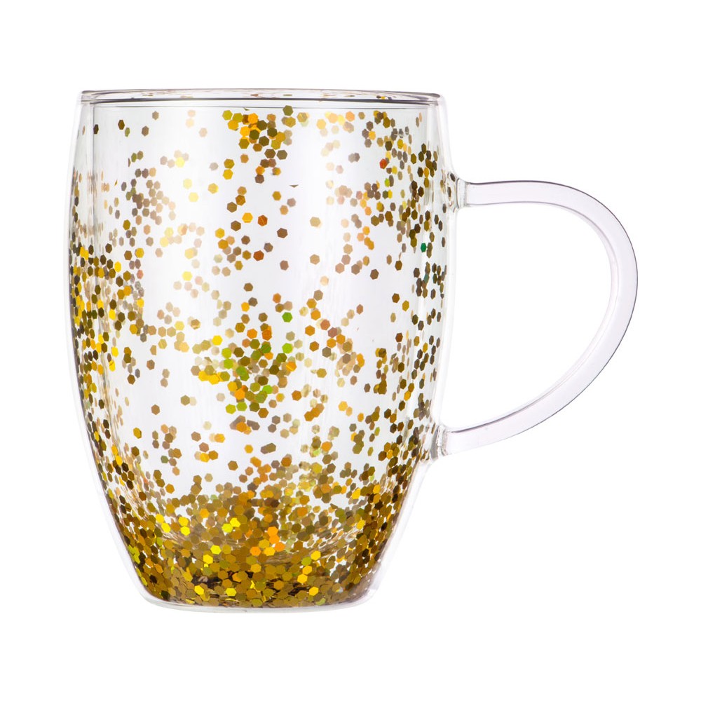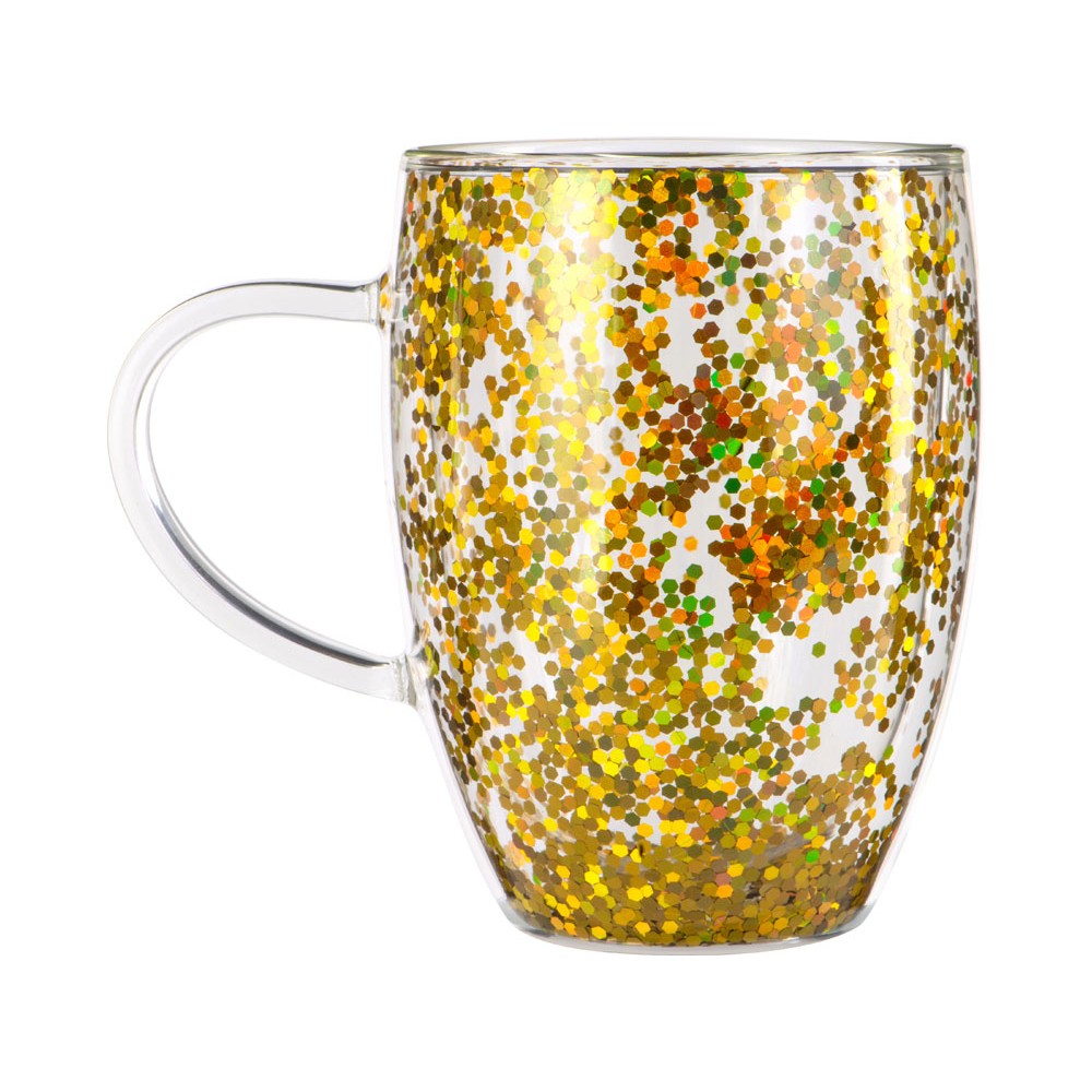 • Кружка с двойными стенками с блестками, 360 мл, золотистый
