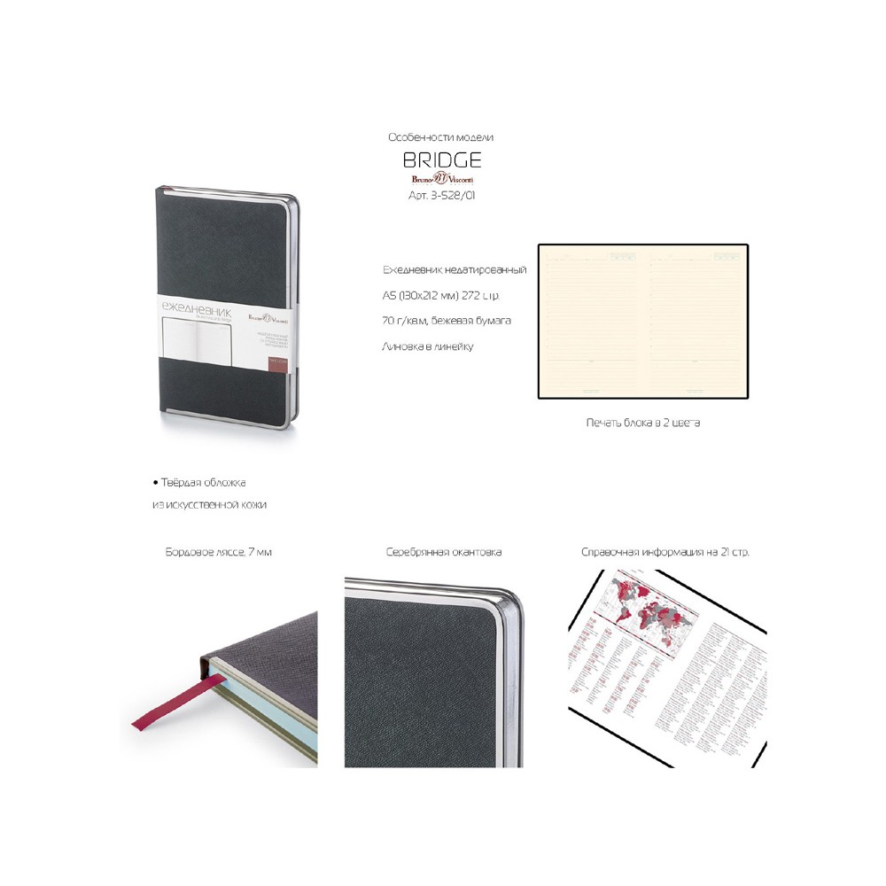 На складе Код товара: 3-528.02 Ежедневник А5 недатированный «Bridge», черный/серебристый