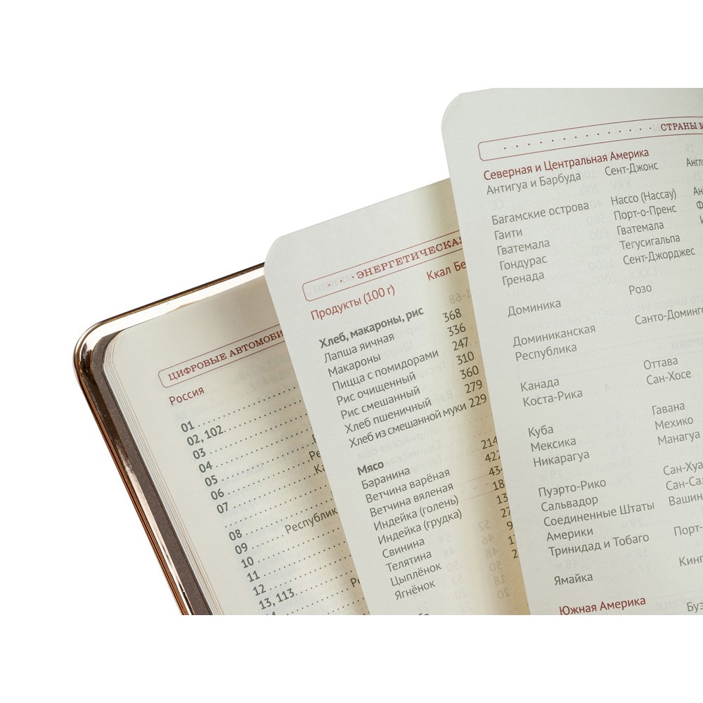 В ежедневнике «Chelsea» есть полезная справочная информация и телефонная книга, а также 272 страницы для записи идей, мыслей и составления рабочих планов. Есть закладка - тесьма из шелка, она интегрирована в обложку и может использоваться как хлястик. Для изготовления страниц используется качественный бежевый офсет повышенной плотности (70 г/кв м), которая производится в Японии и подходит для всех видов чернил. Бордовое ляссе, совпадающее по цвету с капталом, служит для удобного перехода к текущей дате.