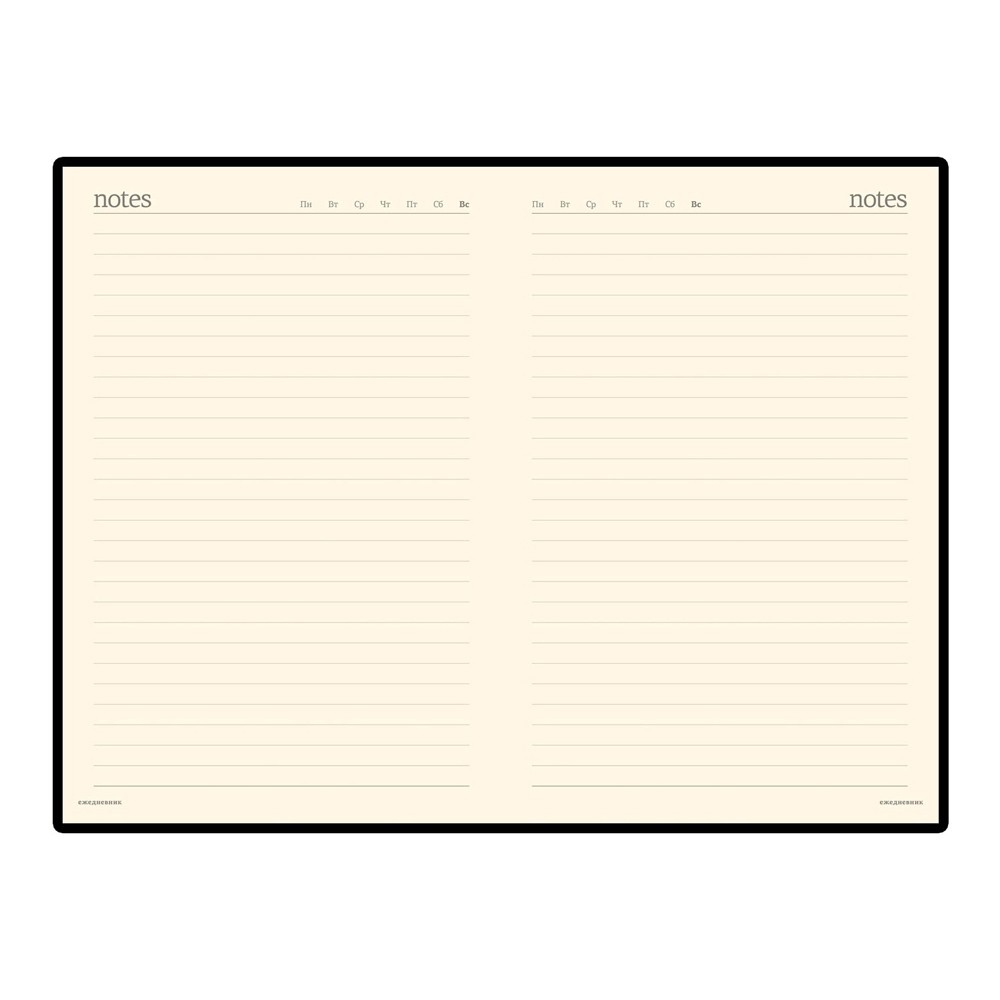 Ежедневник выпускается в универсальном формате А5. Размер обложки – 144*215 мм. В недатированном блоке для записей 320 страниц из тонированной бумаги бежевого цвета. Бумага плотностью 70 г/м2.