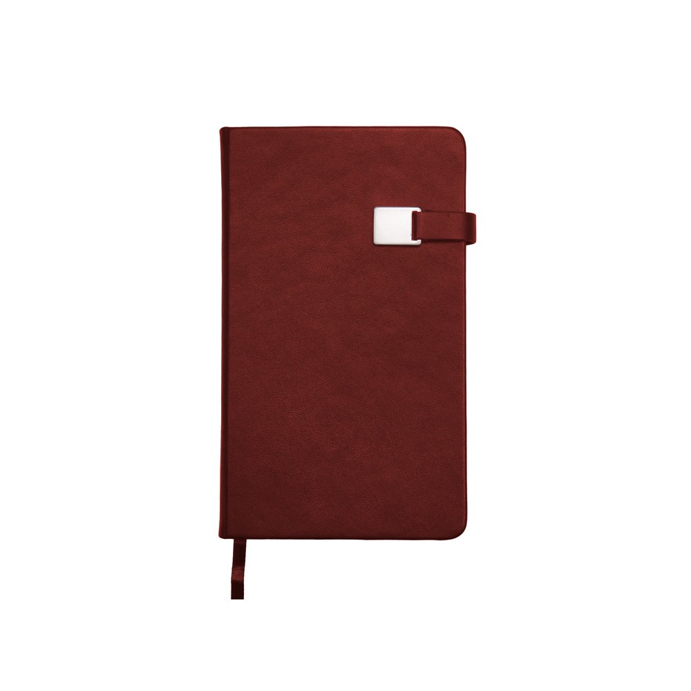 Твердую обложку из высококачественной искусственной кожи дополняет металлический хлястик на магните. Ляссе в цвет обложки позволяет быстро найти нужную страницу. Блок в 272 страницы произведен из бежевой бумаги плотностью 70 г/кв.м и имеет раздел справочной информации на 19 страницах. Для удобства навигации все углы блока перфорированы, имеют скруглённую форму.