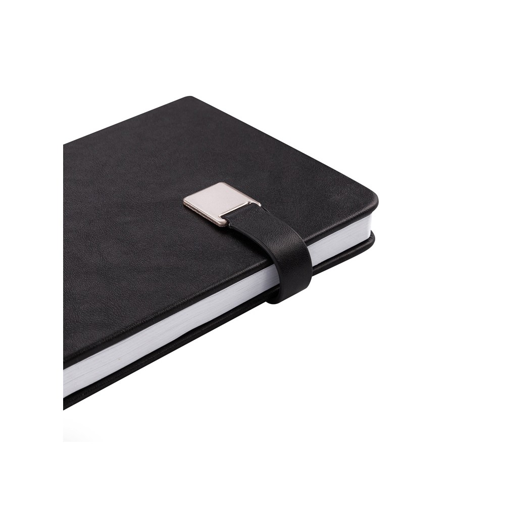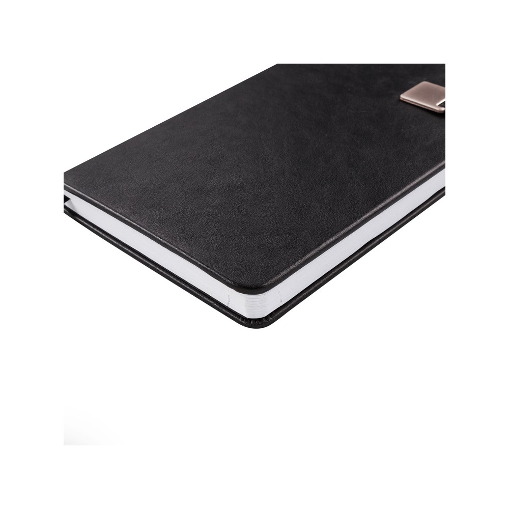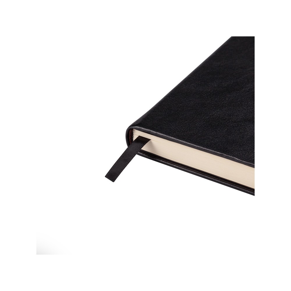 Твердую обложку из высококачественной искусственной кожи дополняет металлический хлястик на магните. Ляссе в цвет обложки позволяет быстро найти нужную страницу. Блок в 272 страницы произведен из бежевой бумаги плотностью 70 г/кв.м и имеет раздел справочной информации на 19 страницах. Для удобства навигации все углы блока перфорированы, имеют скруглённую форму.