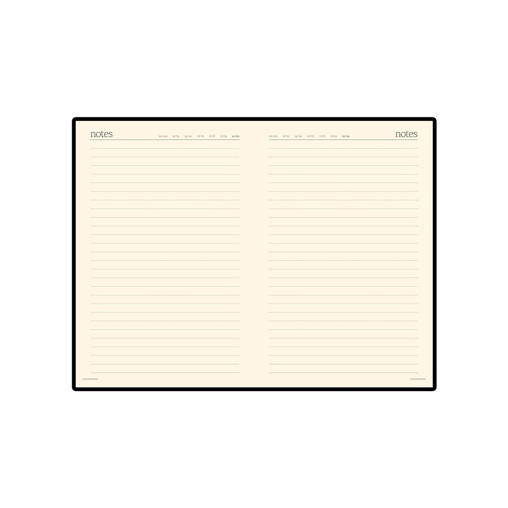 Строгий офисный дизайн, классический долговечный переплетный материал с гладкой фактурой - безусловные преимущества этих корпоративных моделей. Черная обложка с закругленными уголками станет отличной основой для Вашего фирменного логотипа. Недатированный ежедневник выпускается в формате А6, что соответствует размерам 87*131. Блок включает 200 страниц из бежевой высококачественной бумаги плотностью 70 грамм. Первые 8 листов отведены под справочную информацию. Восемь последних листов снабжены микроперфорацией, гарантирующей аккуратную линию отрыва. Под обложкой расположена шелковая закладка-ляссе.