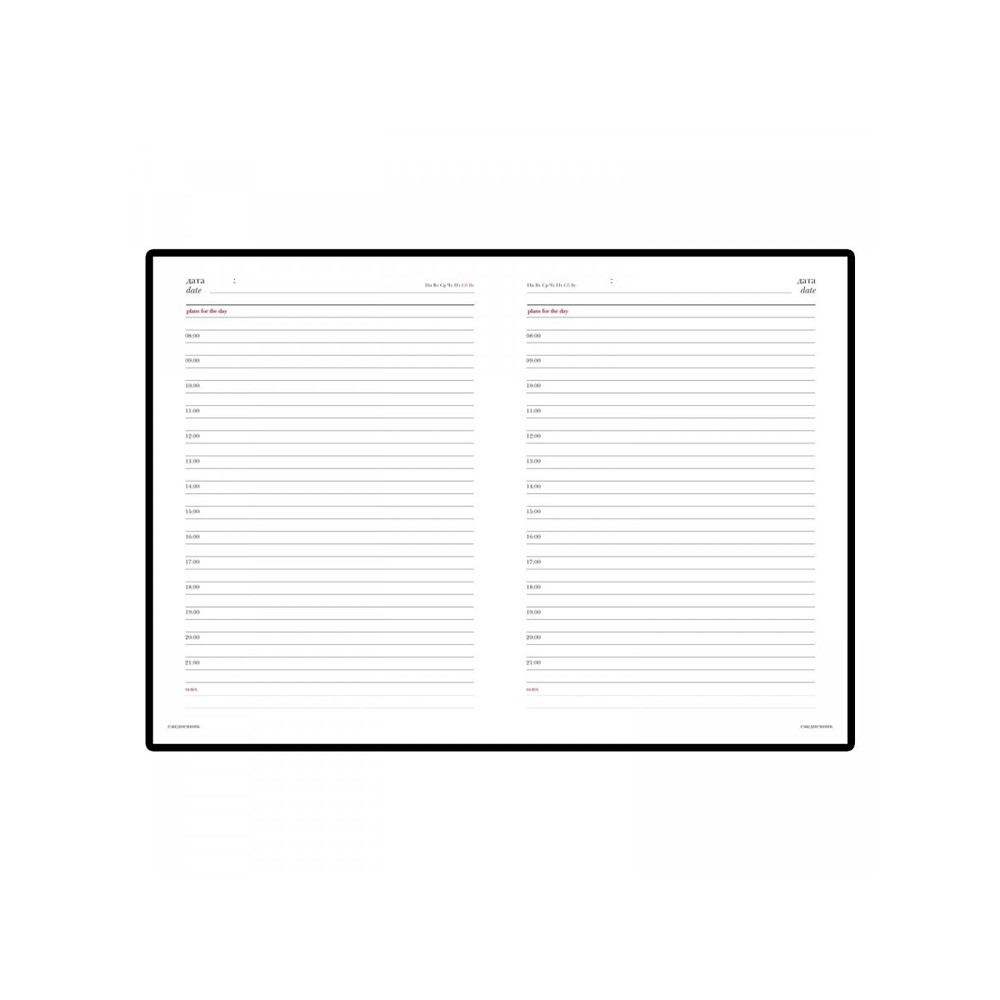 В ежедневнике «Sidney Nebraska» есть полезная справочная информация и телефонная книга на 18 листов, а также 272 страницы для записи идей, мыслей и составления рабочих планов. Для изготовления страниц используется качественный бежевый офсет повышенной плотности (70 г/кв м), который производится в Японии и подходит для всех видов чернил. Разметка блока с указанием времени позволяет планировать дела с точностью до 1 часа.