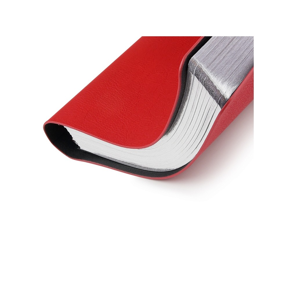 Гибкая (flex) обложка из фактурной высококачественной экокожи, скругленный угол обложки и блока, полускрытый гребень, позволяющий держать ежедневник открытым на столе и работать с комфортом, делая записи, серебряный обрез - все это визитная карточка ежедневника ORBIT от Bruno Visconti.
