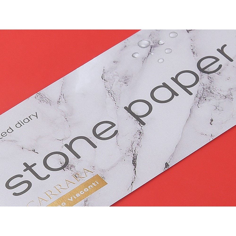 Уникальность недатированного ежедневника Carrara от Bruno Visconti — в его блоке. Он изготовлен из каменной бумаги плотностью 144 г/кв.м, отличающейся особой гладкостью и повышенной прочностью. Она не боится воды и пролитого кофе, достаточно просто протереть сухой салфеткой.