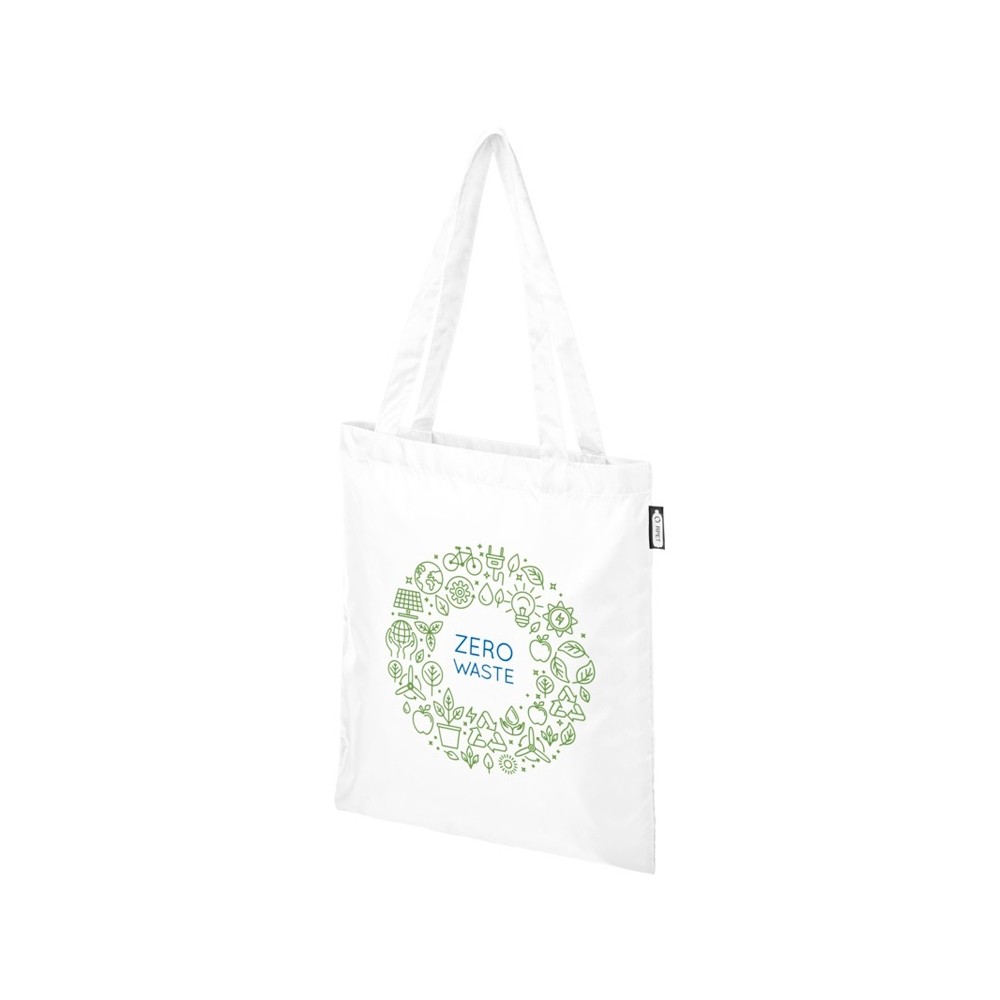 Прочная сумка, изготовленная на 100% из переработанного пластика, предназначенного для повторного использования, что способствует уменьшению количества пластиковых отходов. Имеет две ручки, высота в раскрытом состоянии — 27 см. Выдерживает вес до 10 кг.
