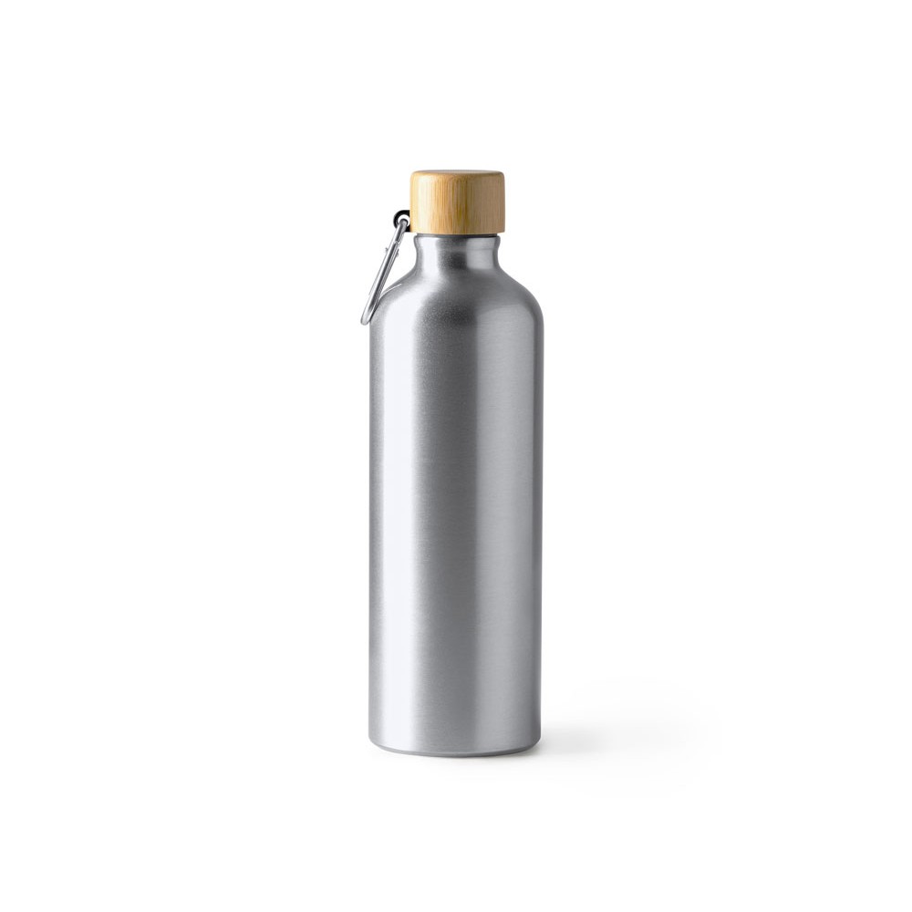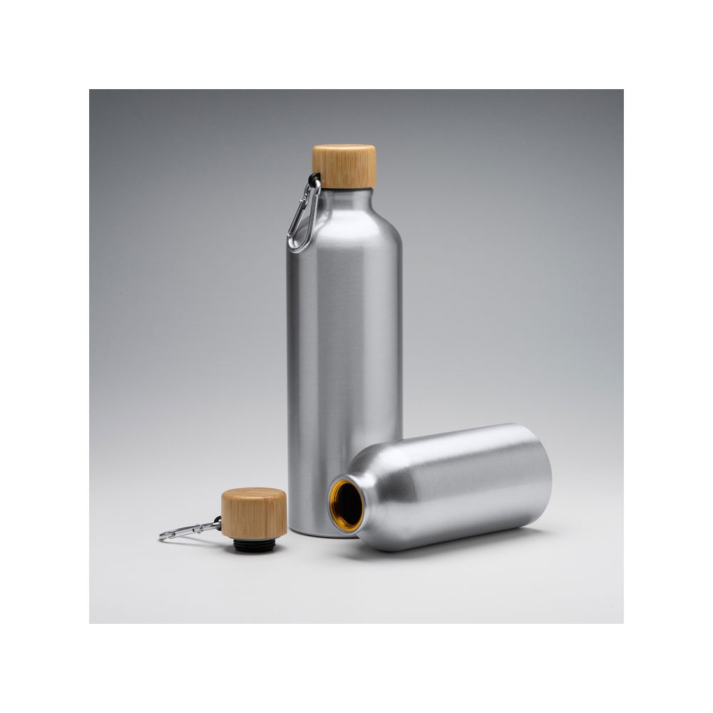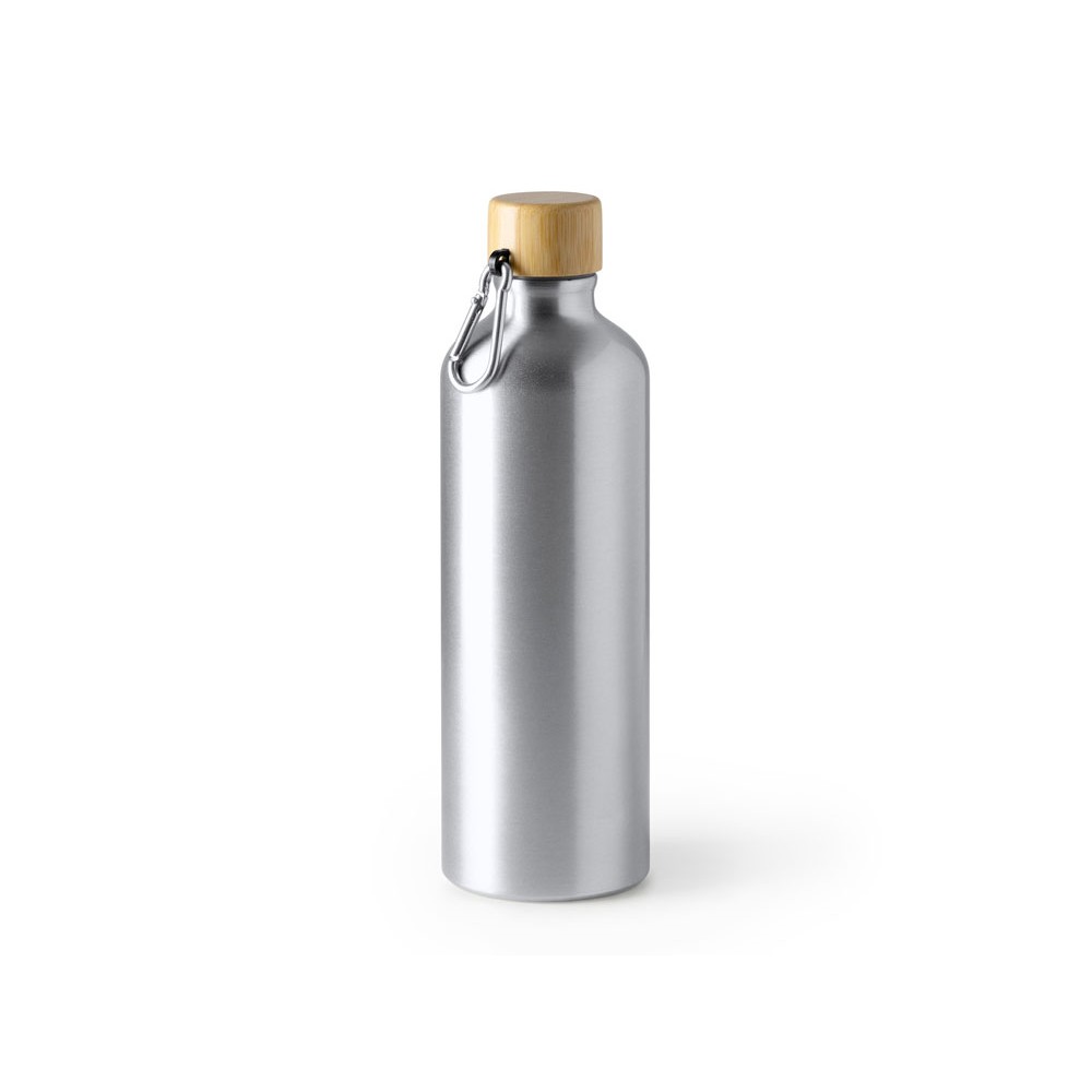 Алюминиевая бутылка с карабином для удобной транспортировки и бамбуковой пробкой. Объем 800 мл.