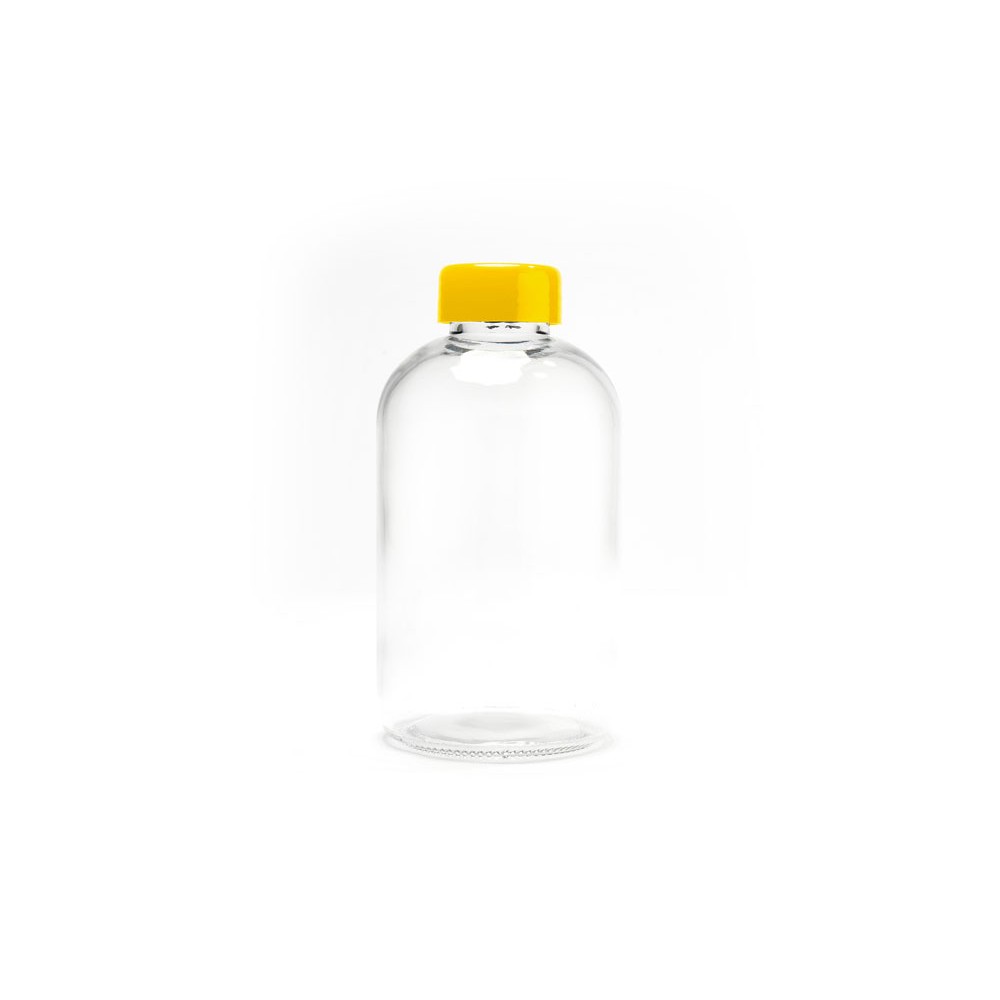 Стеклянная бутылка емкостью 600 мл. включает инновационный неопреновый чехол самых разных цветов с ручкой для переноски.