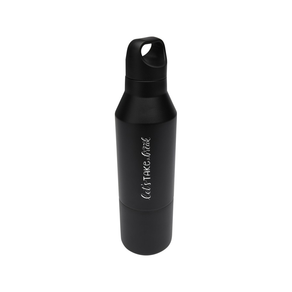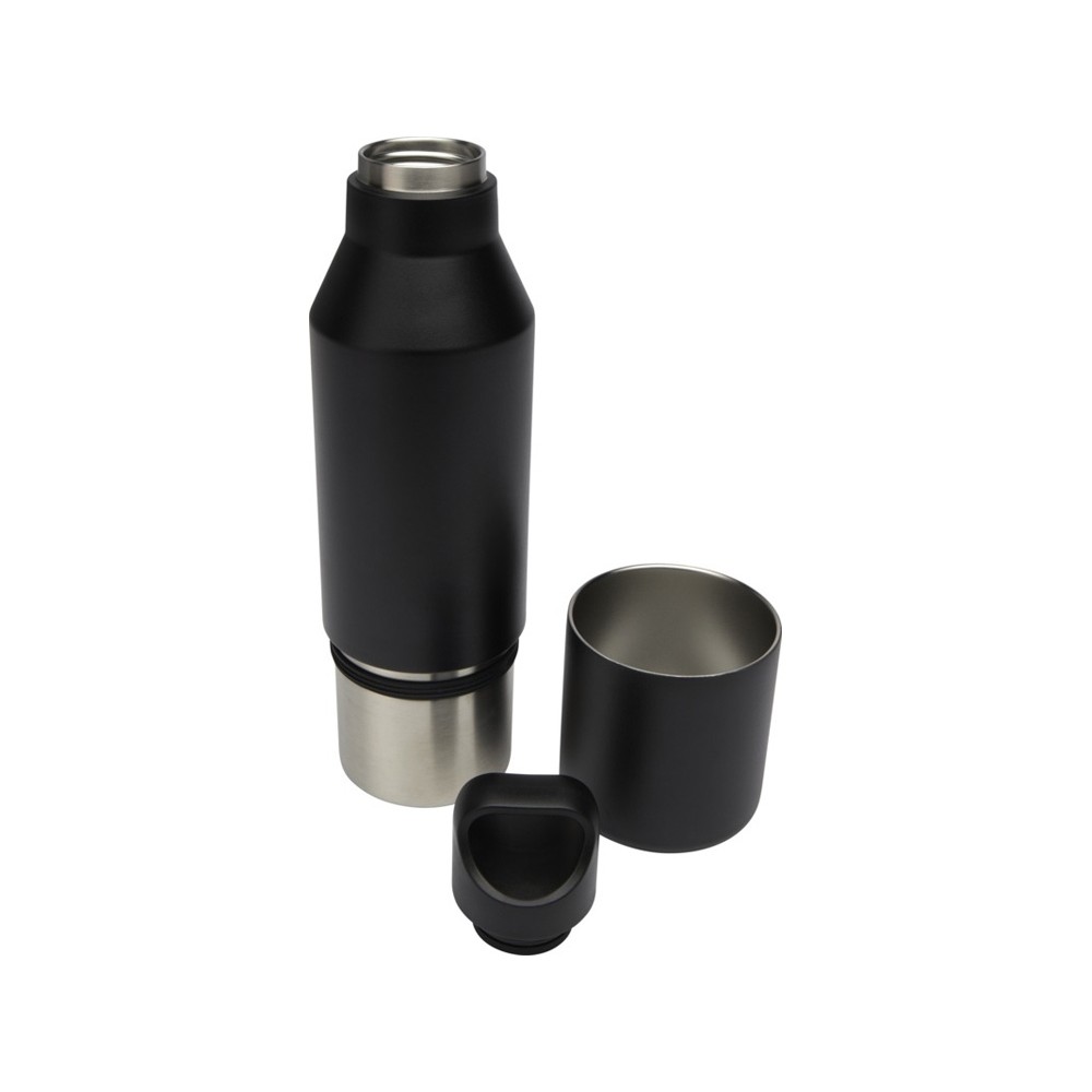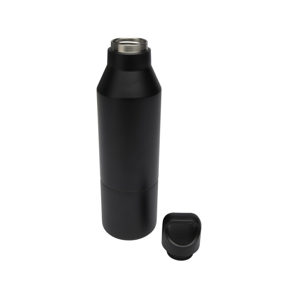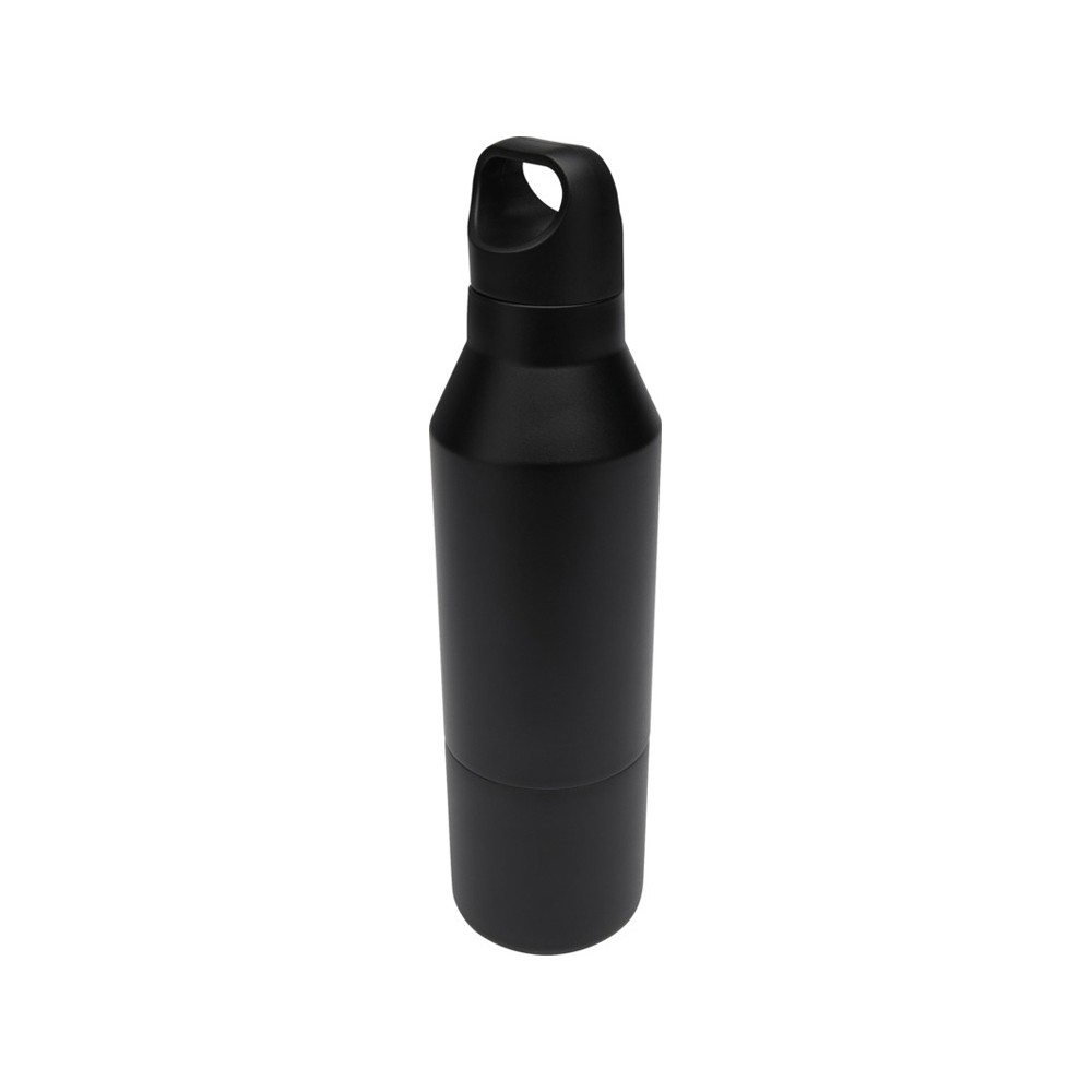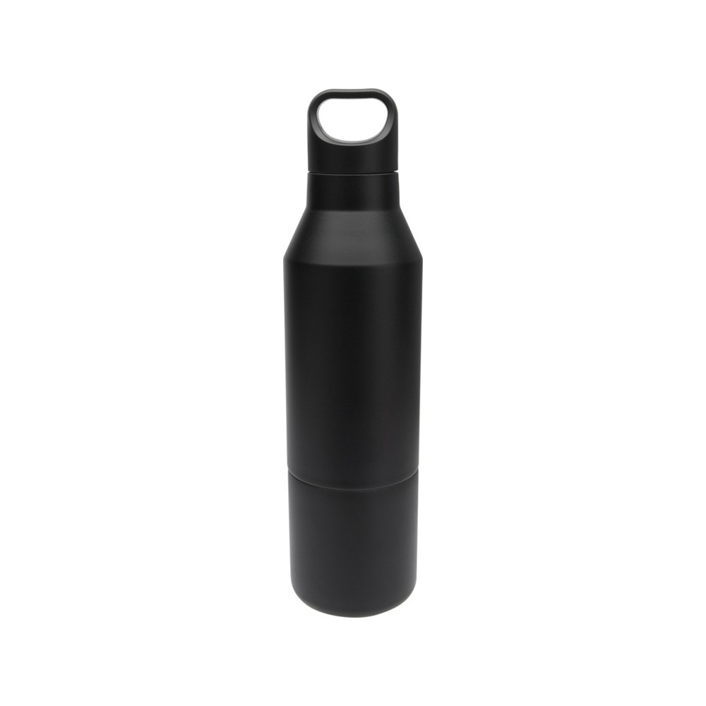 Бутылка из нержавеющей стали с двойными стенками и медной изоляцией, сертифицированная согласно RCS, со съемной крышкой. Эта многофункциональная бутылка помещается в боковой карман рюкзака и имеет удобную ручку для переноски, встроенную в крышку. Прочное порошковое покрытие снаружи. Напитки останутся горячими в течение 12 часов и холодными в течение 24 часов. Поставляется в подарочной коробке из переработанного картона. Объем бутылки: 600 мл. Объем кружки: 300 мл. Recycled stainless steel. упаковка FSC Mix Credit P5.1 CU-COC-877277.
