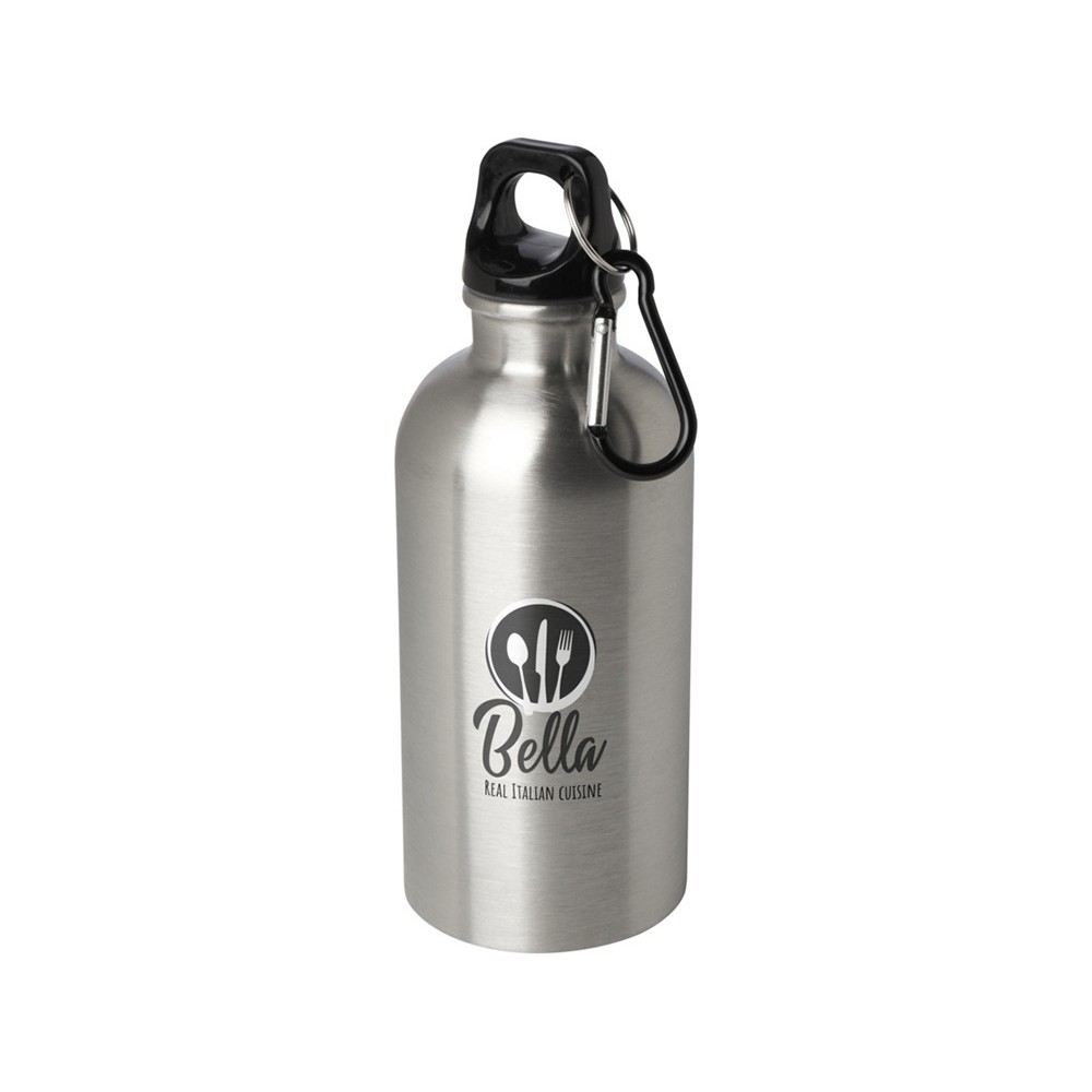 Одностенная бутылка для воды с карабином Oregon, изготовленная из нержавеющей стали, сертифицированной по стандарту RCS, объемом 400 мл - Серебряный