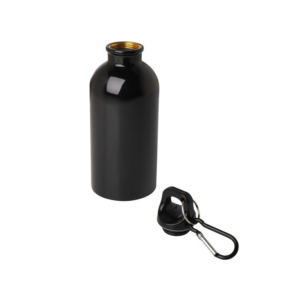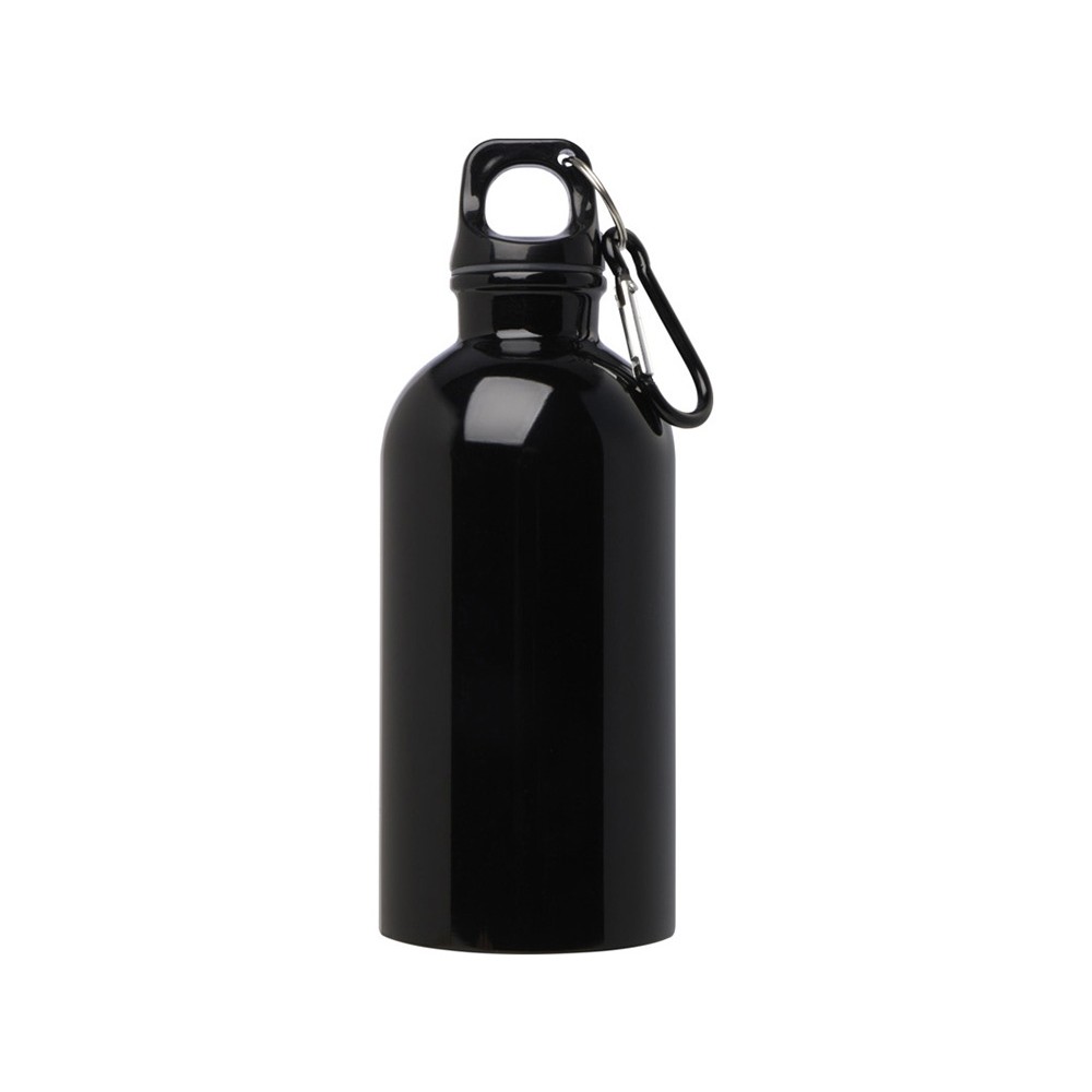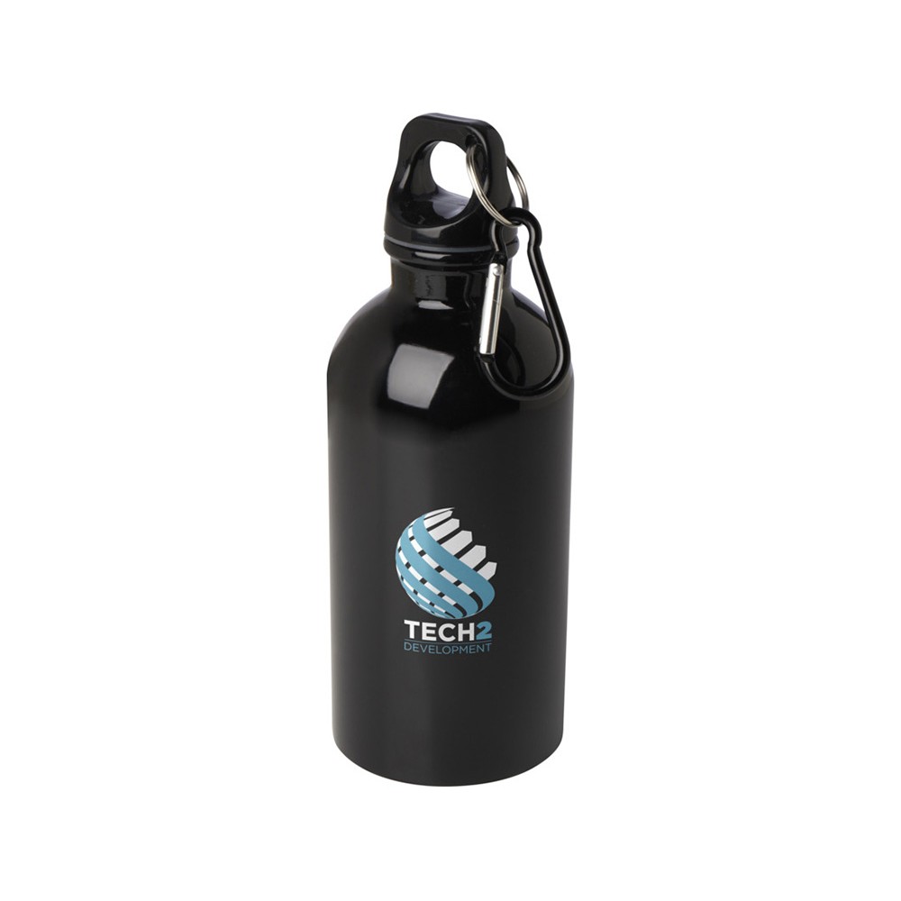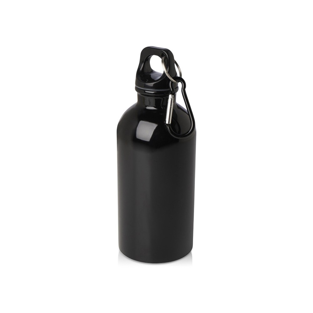 Одностенная бутылка для воды с карабином Oregon, изготовленная из нержавеющей стали, сертифицированной по стандарту RCS, объемом 400 мл - сплошной черный