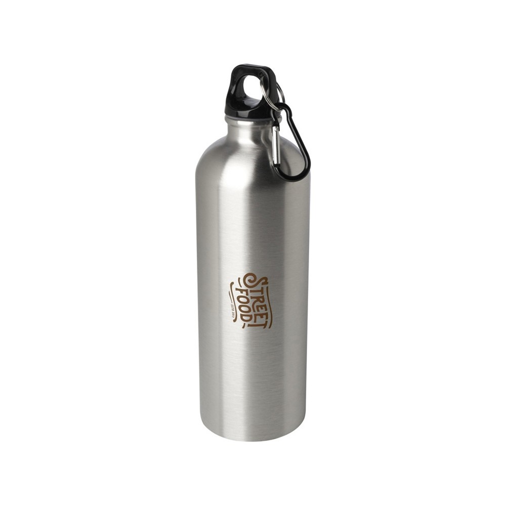 Одностенная бутылка для воды с карабином Oregon, изготовленная из нержавеющей стали, сертифицированной по стандарту RCS, объемом 750 мл - Серебряный