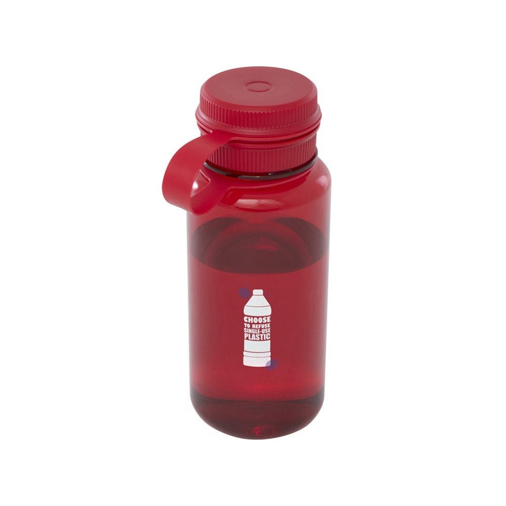 Одностенная спортивная бутылка, изготовленная из переработанного ПЭТ-пластика, сертифицированного RCS, с завинчивающимся верхом, герметичной крышкой и удобной ручкой для переноски, встроенной в крышку. Конструкция с двумя отверстиями для легкой очистки и наполнения. В соответствии с одобренным EFSA (Европейским агентством по безопасности пищевых продуктов) процессом переработки ПЭТ. Объем: 900 мл. Переработанный PET пластик.