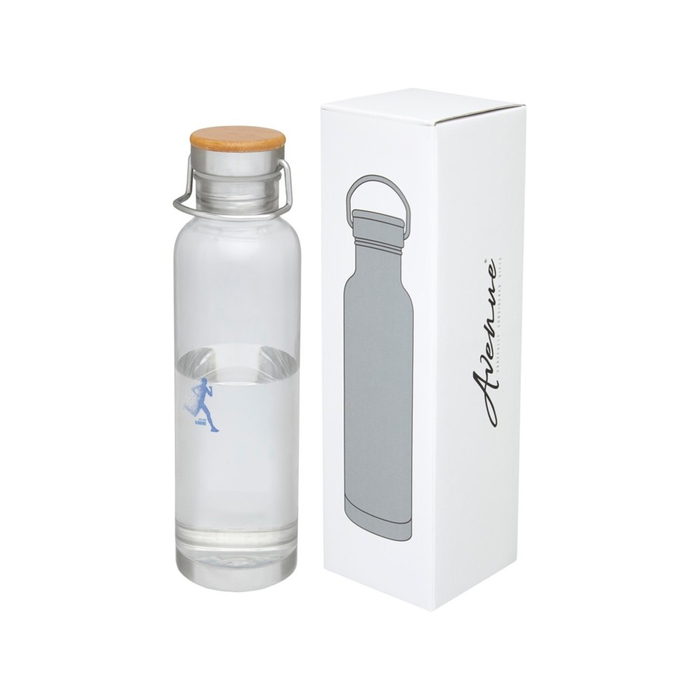 Спортивная бутылка с одинарными стенками из прочного материала от Tritan™. Устойчива к ударам, не пачкается и не пропускает запахи. Имеет съемную крышку с бамбуковым колпачком и ручку для удобной переноски. Без содержания БФА. Объем 800 мл. Представлена в подарочной коробке Avenue.