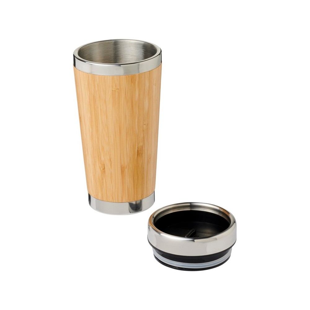 Стакан Bambus с бамбуковой наружной отделкой 450 мл. Двухстенный термостакан с изоляцией из нержавеющей стали и наружной отделкой из натурального бамбука. Напитки остаются горячими в течение 2 часов и холодными – в течение 4 часов. Пить из него легко благодаря нажимной крышке с задвижкой для закрытия. Нержавеющая сталь, бамбук.