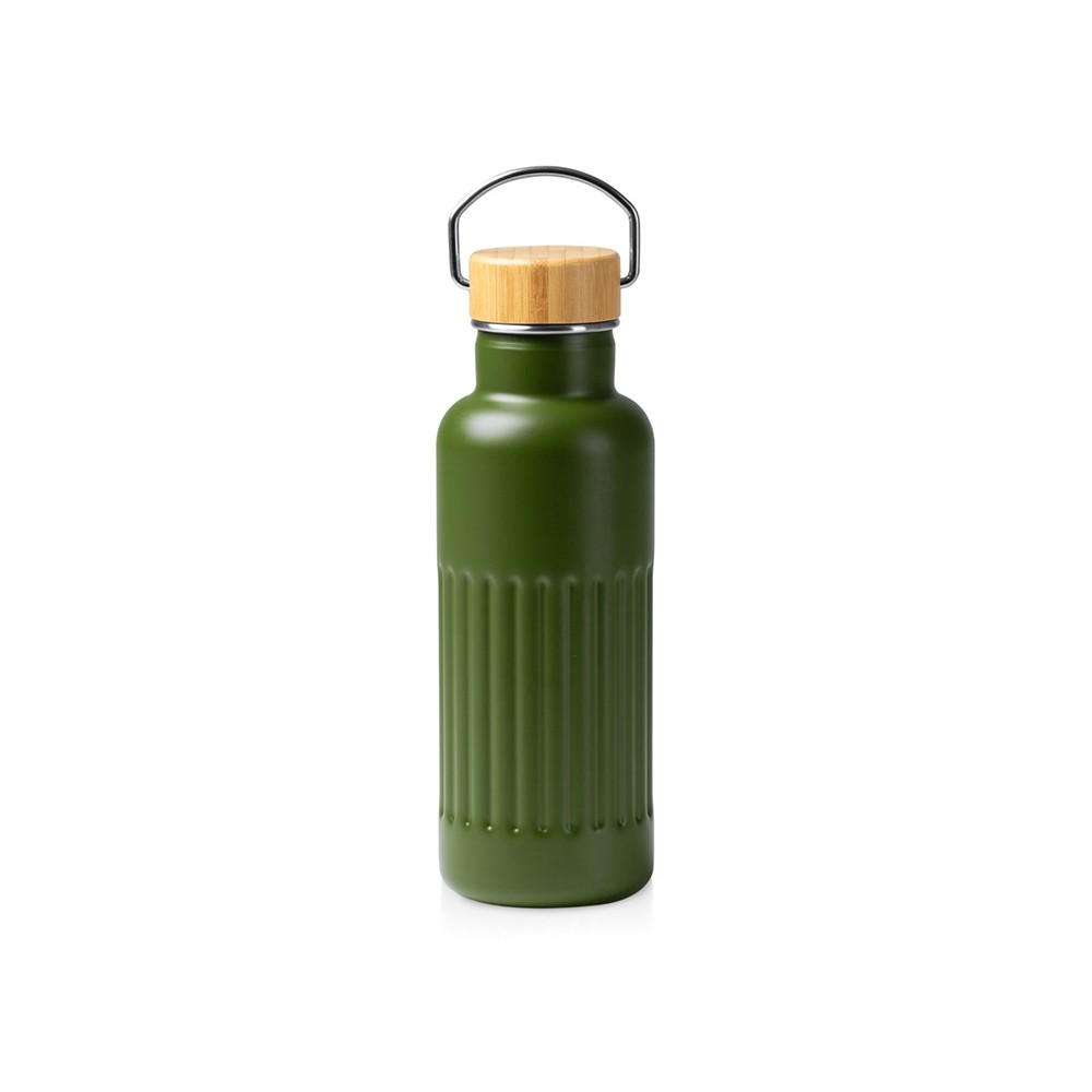 • Термобутылка «Нобук» из переработанной нержавеющей стали, с бамбуковой крышкой, темно-зеленый