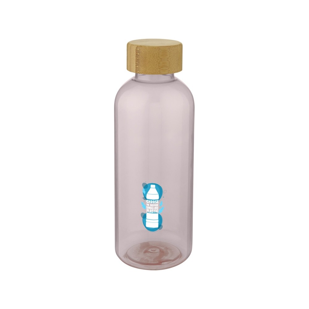 Одностенная спортивная бутылка из 100% переработанного пластика со стильной бамбуковой крышкой. Не содержит БФА, испытана и одобрена в соответствии с немецким законодательством о безопасности пищевых продуктов (LFGB). Проверена на содержание фталатов и одобрена для использования в соответствии с правилами REACH. Бамбук используется из устойчивых, экологически и социально ответственных источников. Объем 650 мл. Рекомендуется мыть вручную. В подарочной коробке из переработанного картона. Переработанный PET пластик, Бамбуковое дерево, Пластик PP. #?0:>2:0: FSC Mix Credit P5.1 CU-COC-877277.