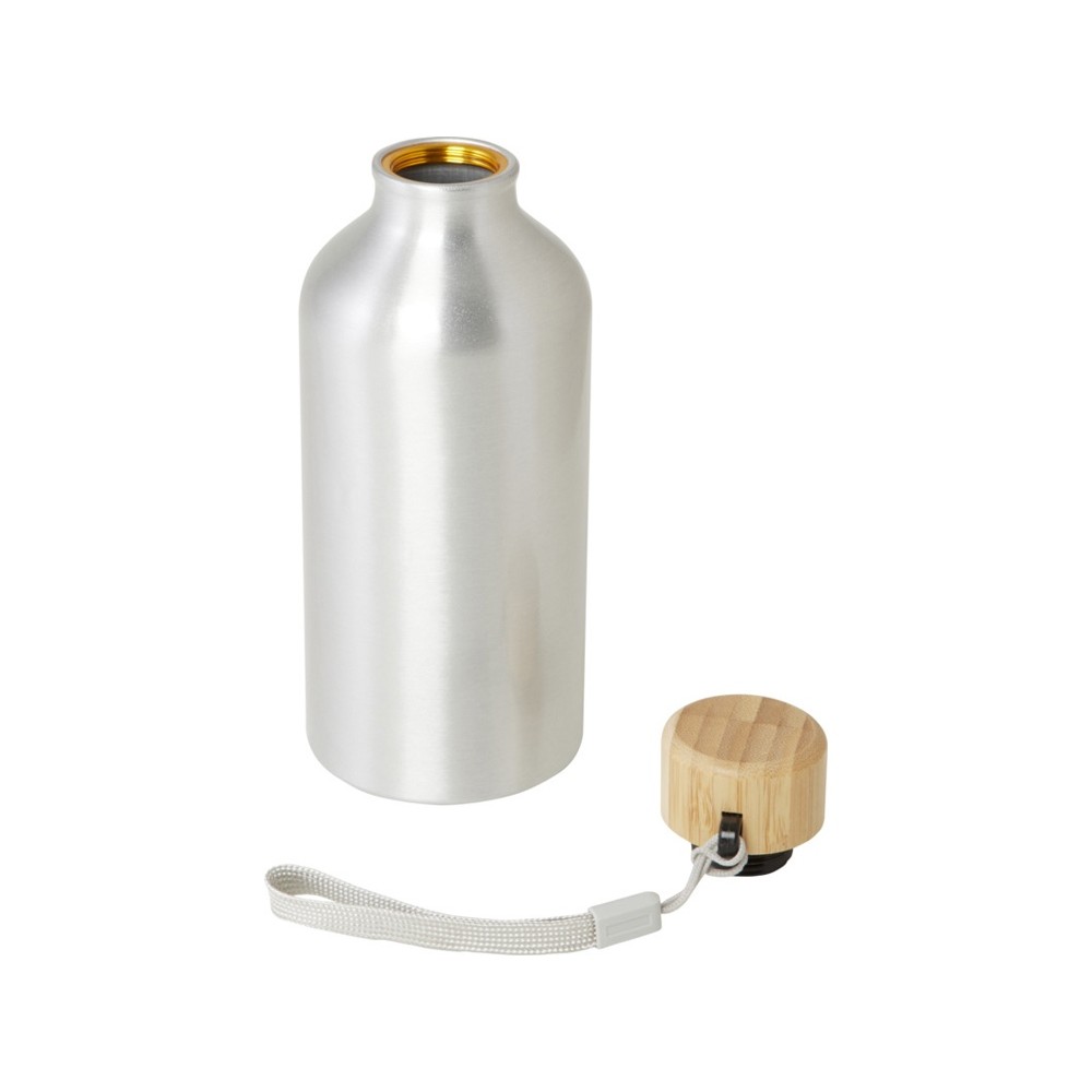 Бутылка для воды из переработанного алюминия, сертифицированного по стандарту RCS, со стильной бамбуковой крышкой. Эта легкая бутылка с одинарными стенками имеет ремень для удобной переноски. Бамбук производится из устойчивых, экологически и социально ответственных источников. Объем 500 мл. Только ручная мойка. Recycled Aluminium, Recycled PP Plastic, Recycled PP Plastic. FSC 100% N5 CU-COC-877277.
