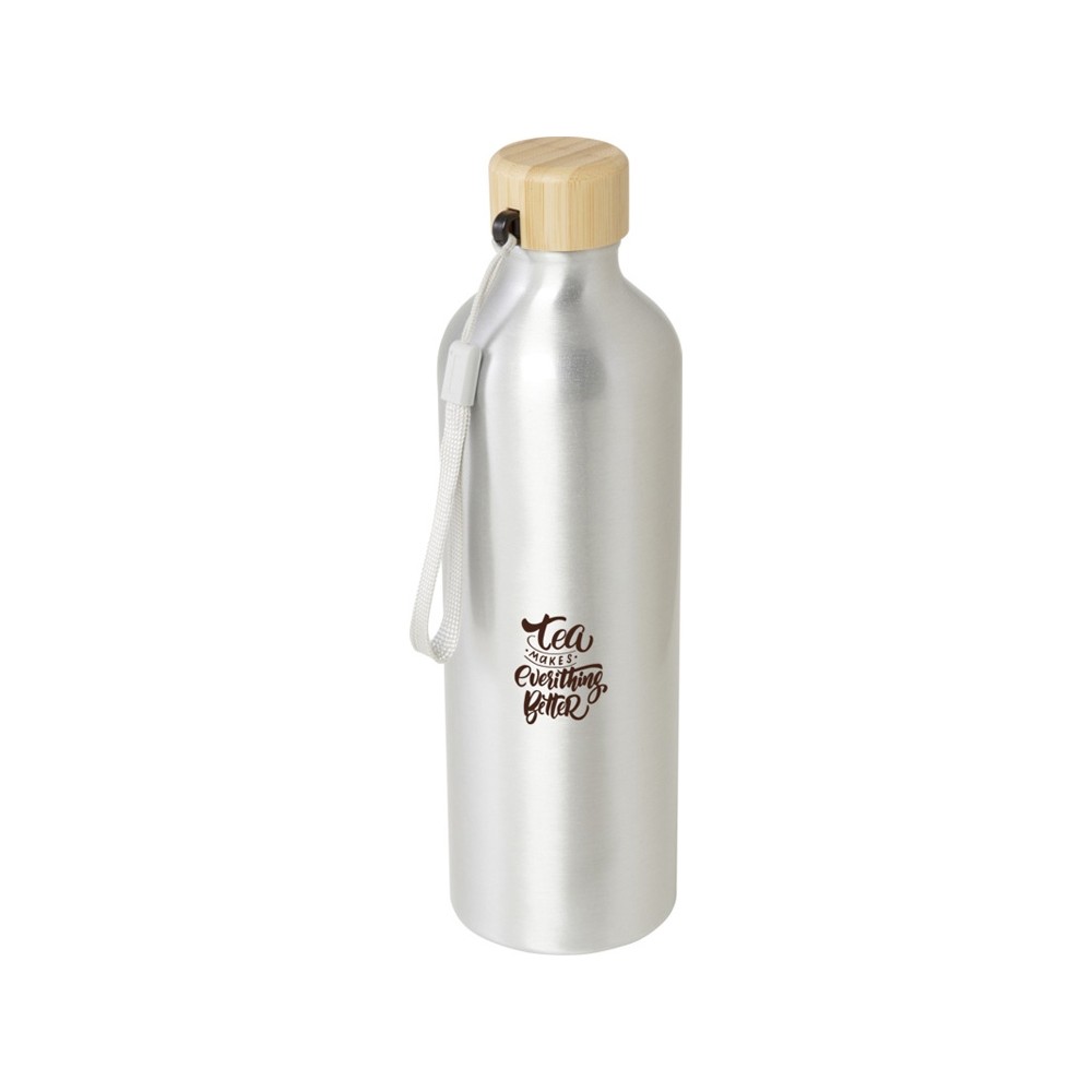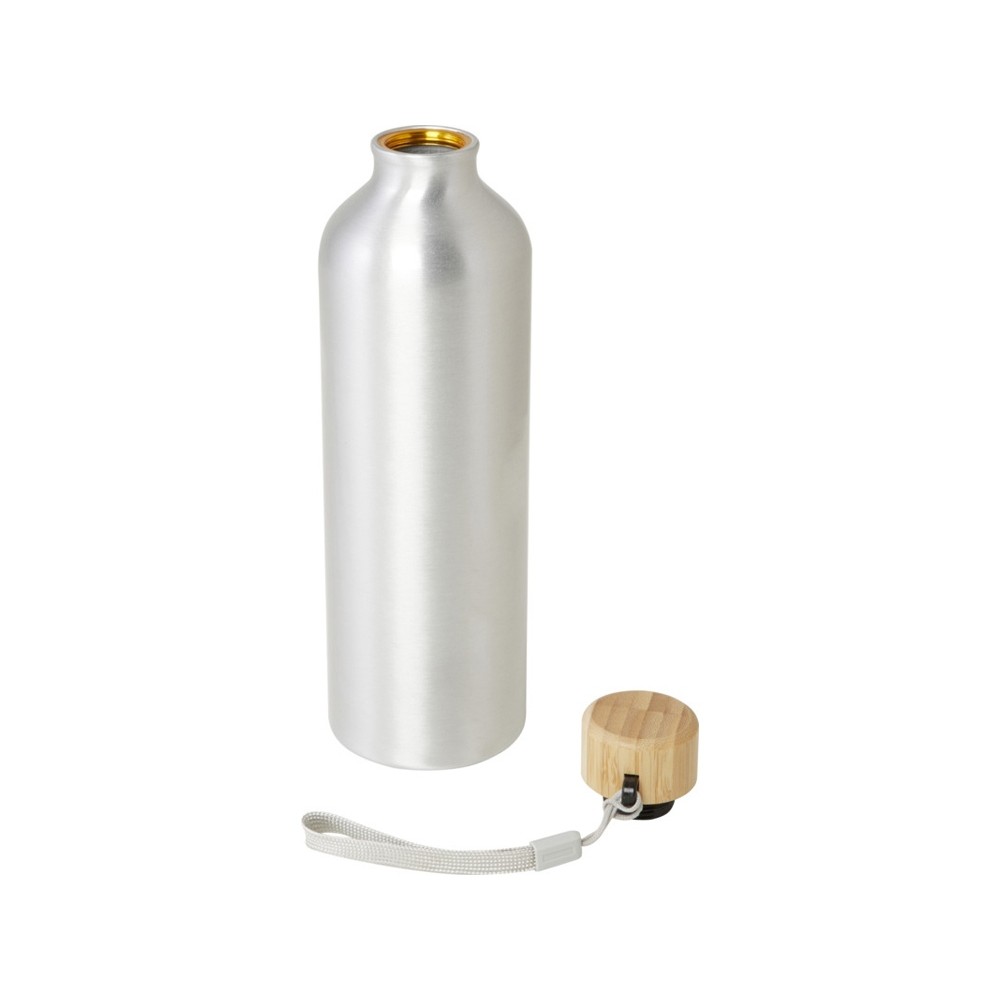 Бутылка для воды из переработанного алюминия, сертифицированного по стандарту RCS, со стильной бамбуковой крышкой. Эта легкая бутылка с одинарными стенками имеет ремень для удобной переноски. Бамбук производится из устойчивых, экологически и социально ответственных источников. Объем 770 мл. Только ручная мойка. Recycled Aluminium, Бамбуковое дерево, Recycled PP Plastic. FSC 100% N5 CU-COC-877277.
