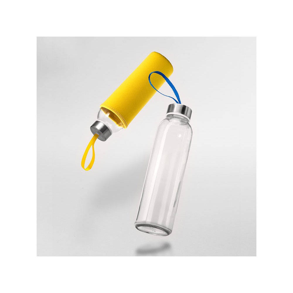• Бутылка стеклянная CAMU в чехле из неопрена, 500 мл, прозрачный/желтый
