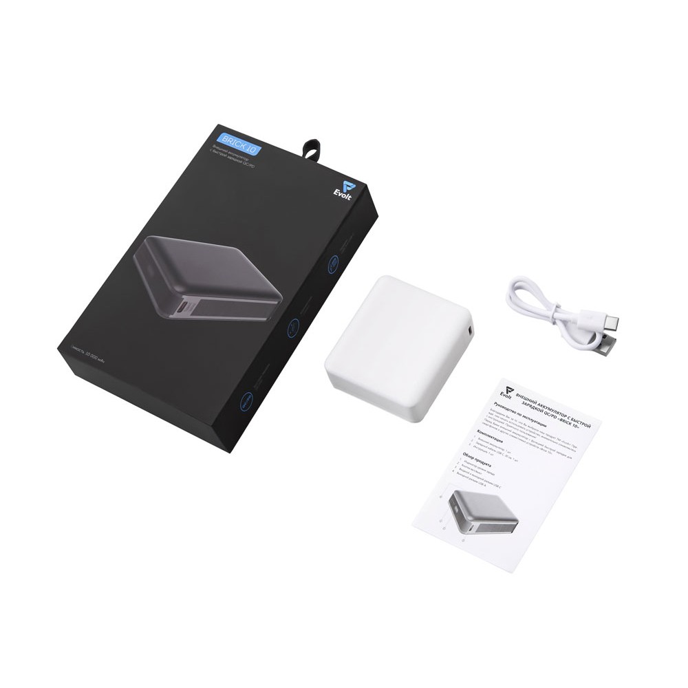 Внешний аккумулятор «Brick 10» с быстрой зарядкой QC/PD, 10000 мАч, белый