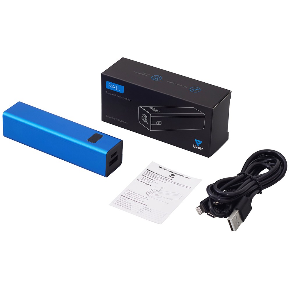 Технические характеристики Внешний аккумулятор «Rail», 5000 mAh, синий